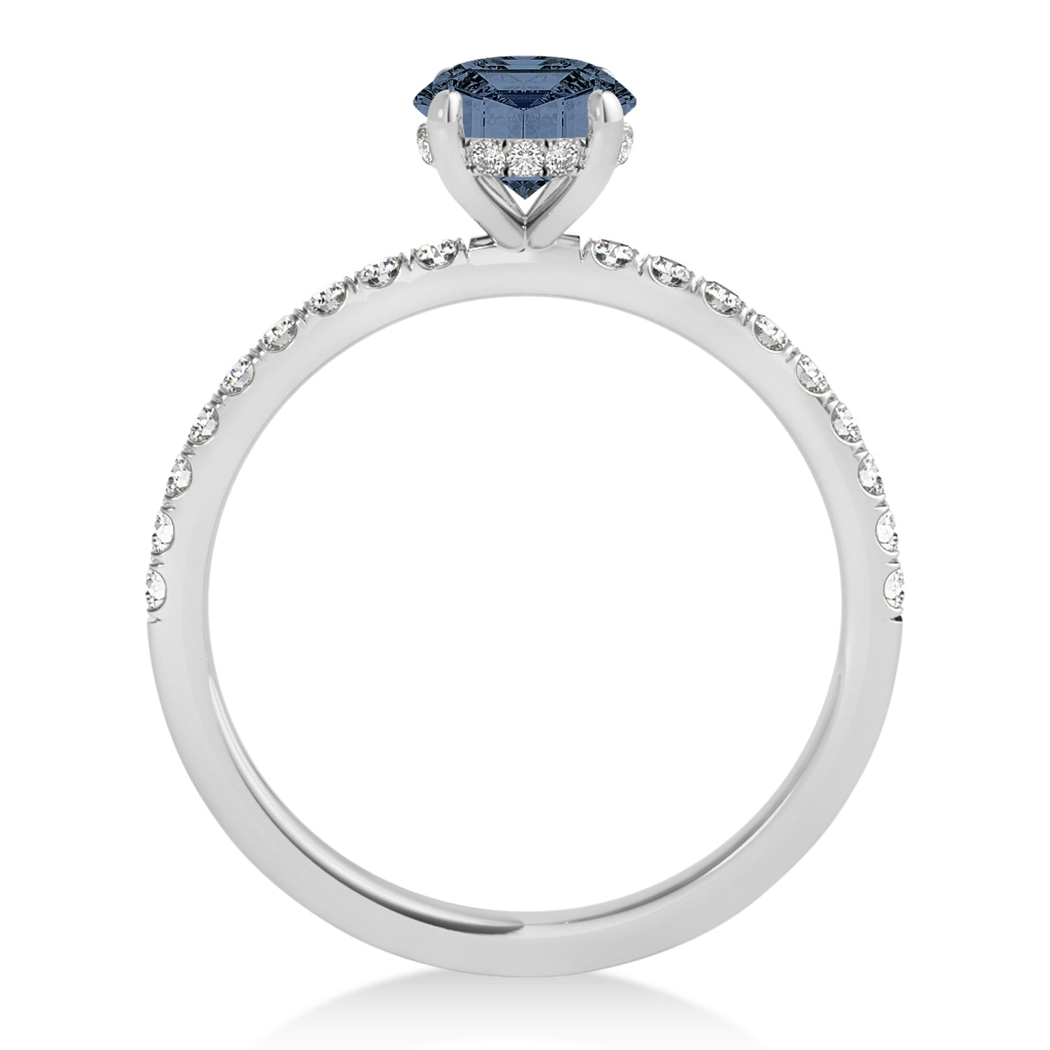 Emerald Gray Spinel & Diamond Single Row Hidden Halo Engagement Ring 1