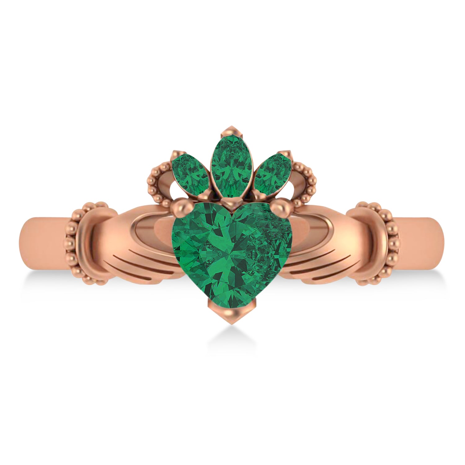 Emerald Heart & Marquise Claddagh Ring 14K Rose Gold (0.81ct)