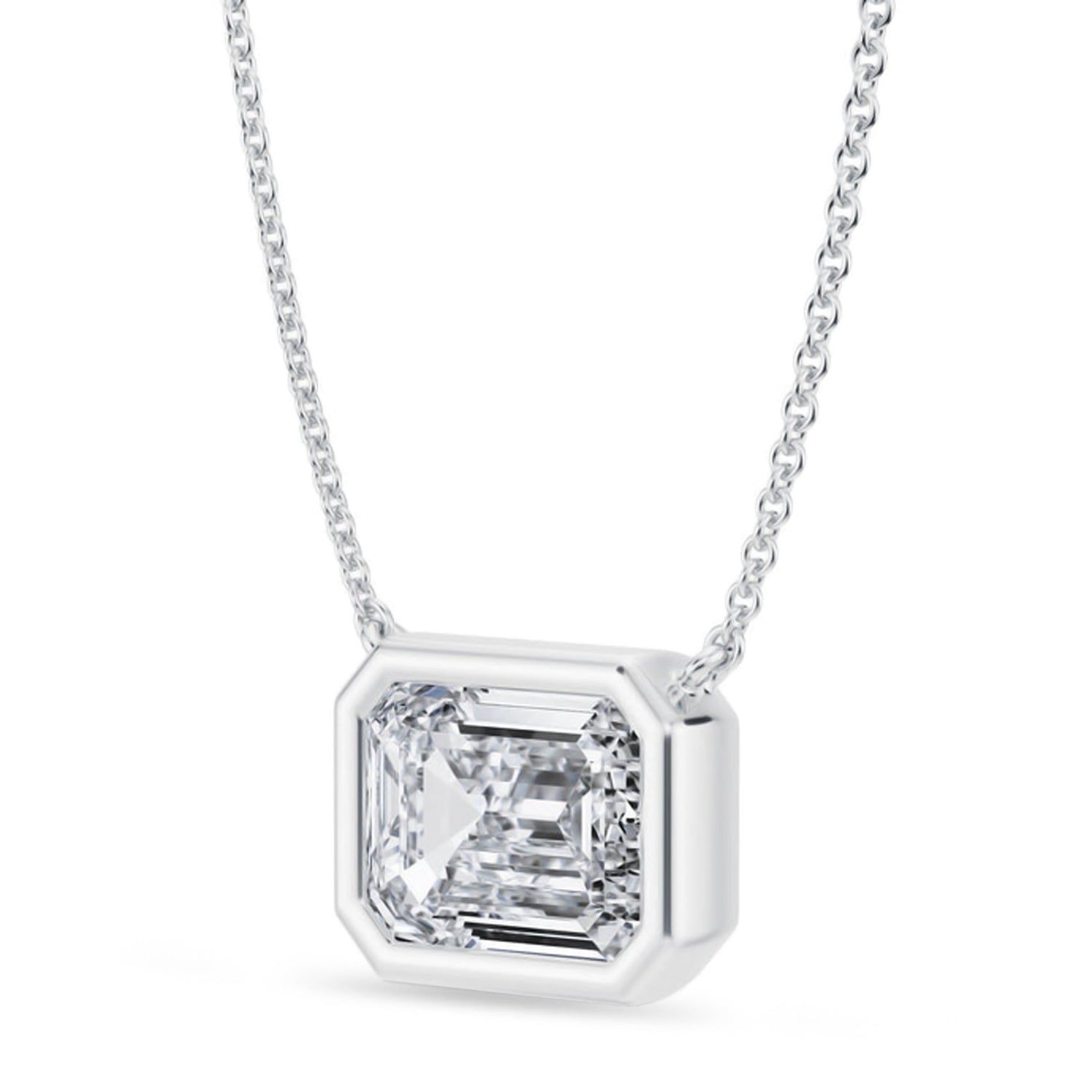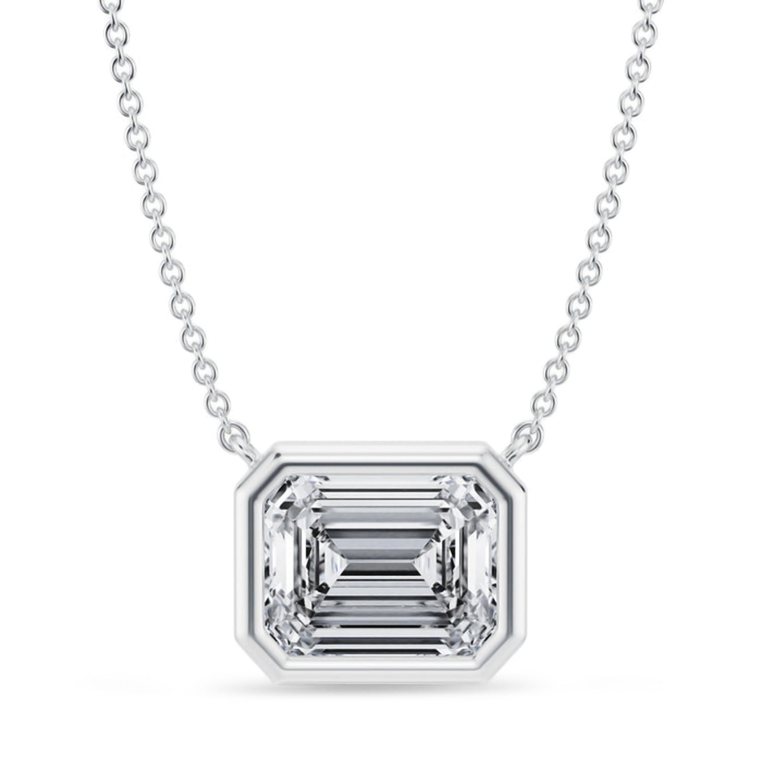 Turn heads with this Emerald Lab Diamond Solitaire Pendant Necklace in 14K White Gold. Showcasing a breathtaking 3.00ct lab grown diamond in a bezel setting, it delivers exceptional brilliance and refined elegance. The emerald cut enhances the diamonds clarity and classic sophistication. Perfect for grand occasions or elevating your personal style. A statement piece that defines timeless luxury.