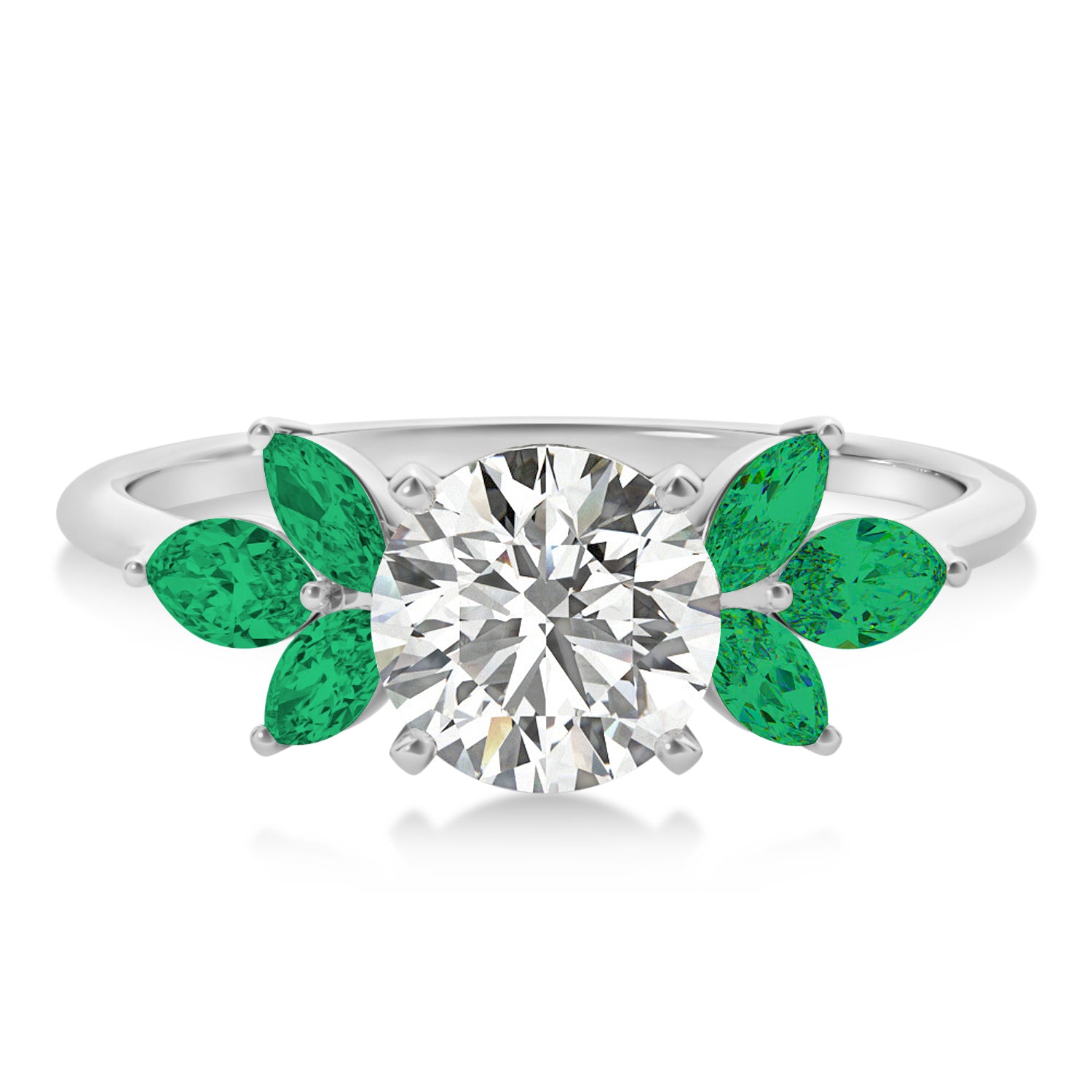 Propose with this stunning, flaunt-worthy marquise floral engagement ring that includes six emerald side stone accents of 0.50ct, prong set in 14k white gold to scatter brilliance in all directions. The gemstones are set in in the flower shaped halo frame around a center stone of your choice.