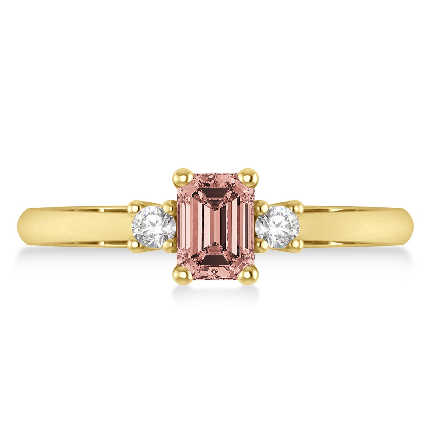 Emerald Morganite & Diamond Three-Stone Engagement Ring 14k Yellow Gold (0.60ct)