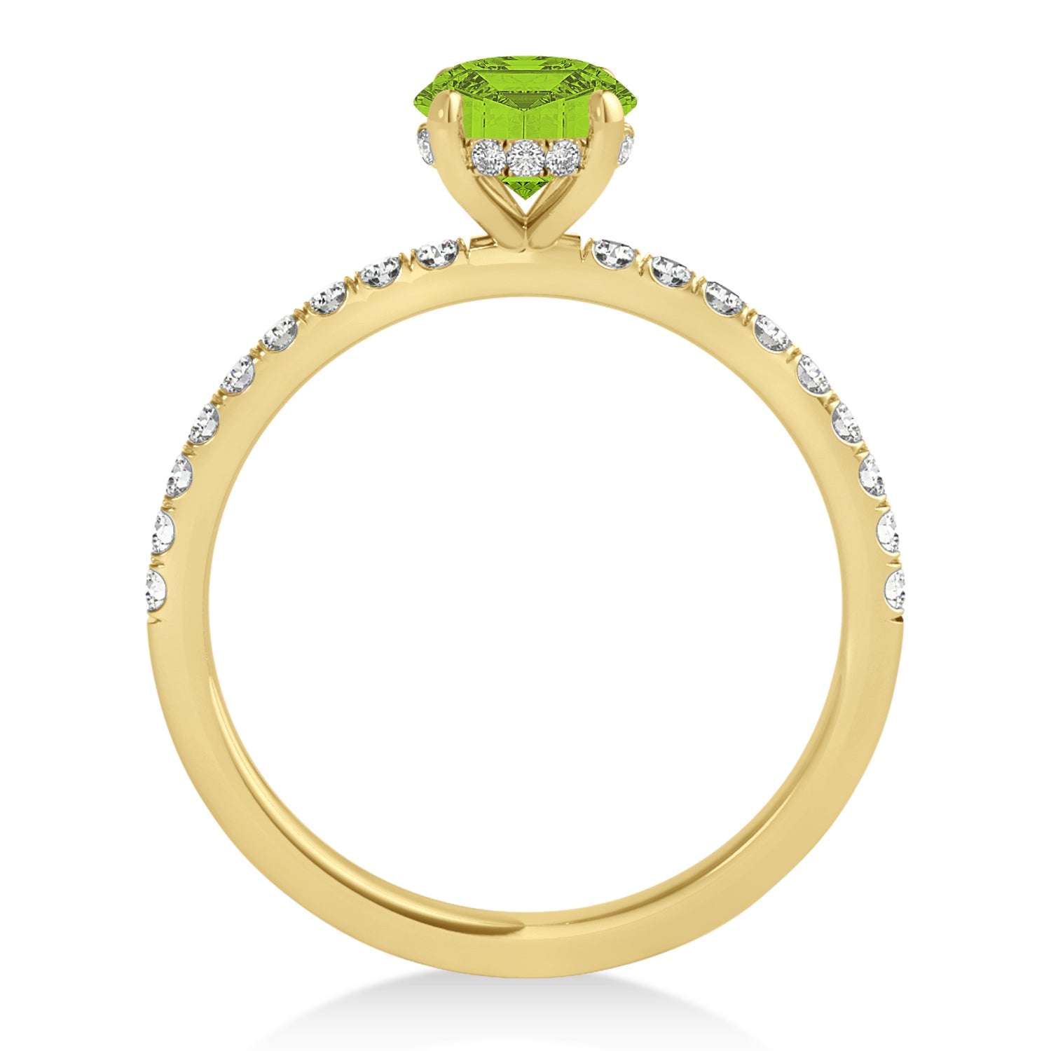 Emerald Peridot & Diamond Single Row Hidden Halo Engagement Ring 14k Yellow Gold (1.31ct)