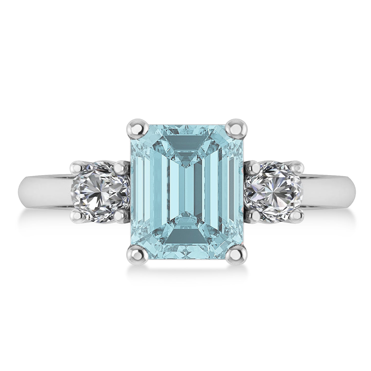 Emerald & Round 3-Stone Aquamarine & Diamond Engagement Ring 14k White