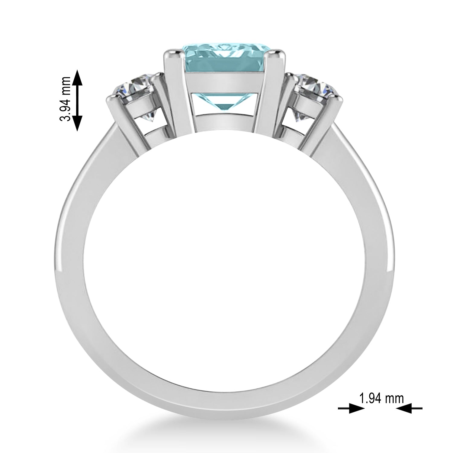 All stones are prong set with a combined 3.00 total carat weight. The diamonds are rated G-H for color and SI1-SI2 for clarity; the aquamarine is of eye clean clarity.