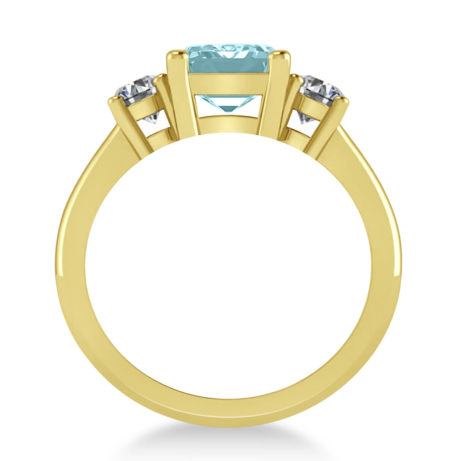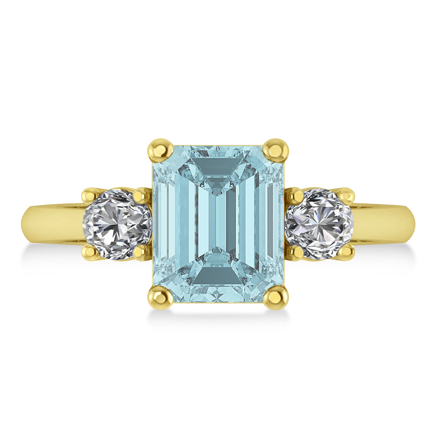 Emerald & Round 3-Stone Aquamarine & Diamond Engagement Ring 14k Yellow Gold (3.00ct)