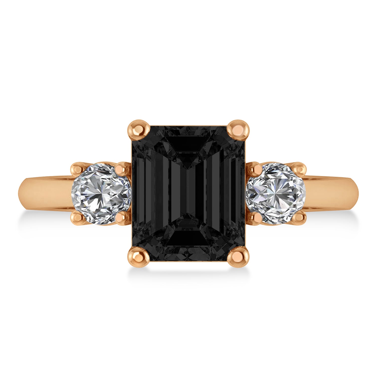 Emerald & Round 3-Stone Black & White Diamond Engagement Ring 14k Rose Gold (3.00ct)