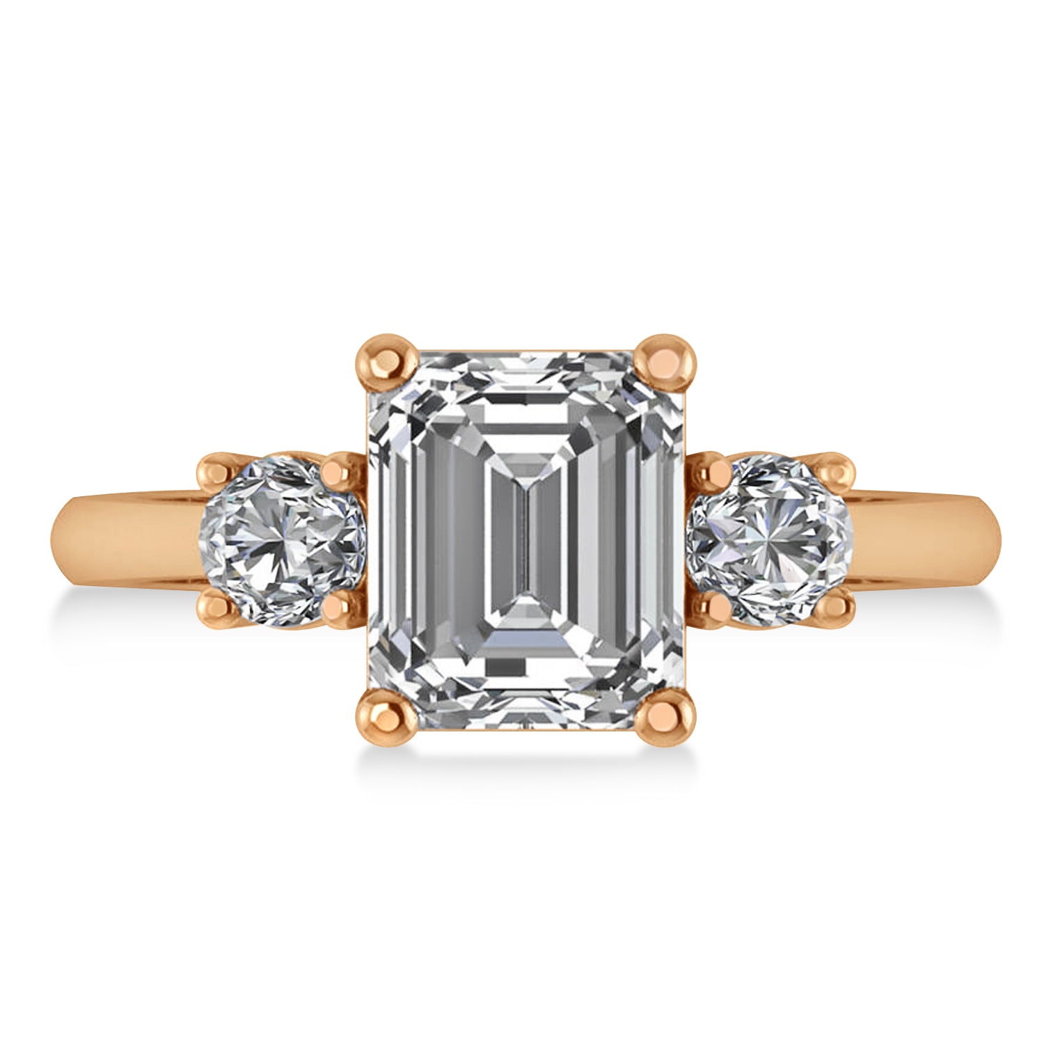 Emerald & Round 3-Stone Diamond Engagement Ring 14k Rose Gold (3.00ct)