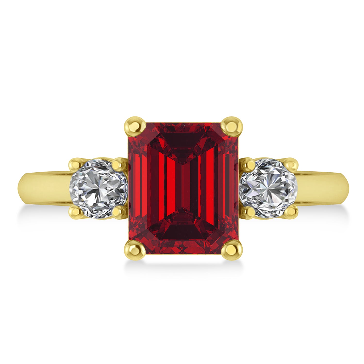 Emerald & Round 3-Stone Ruby & Diamond Engagement Ring 14k Yellow Gold (3.00ct)
