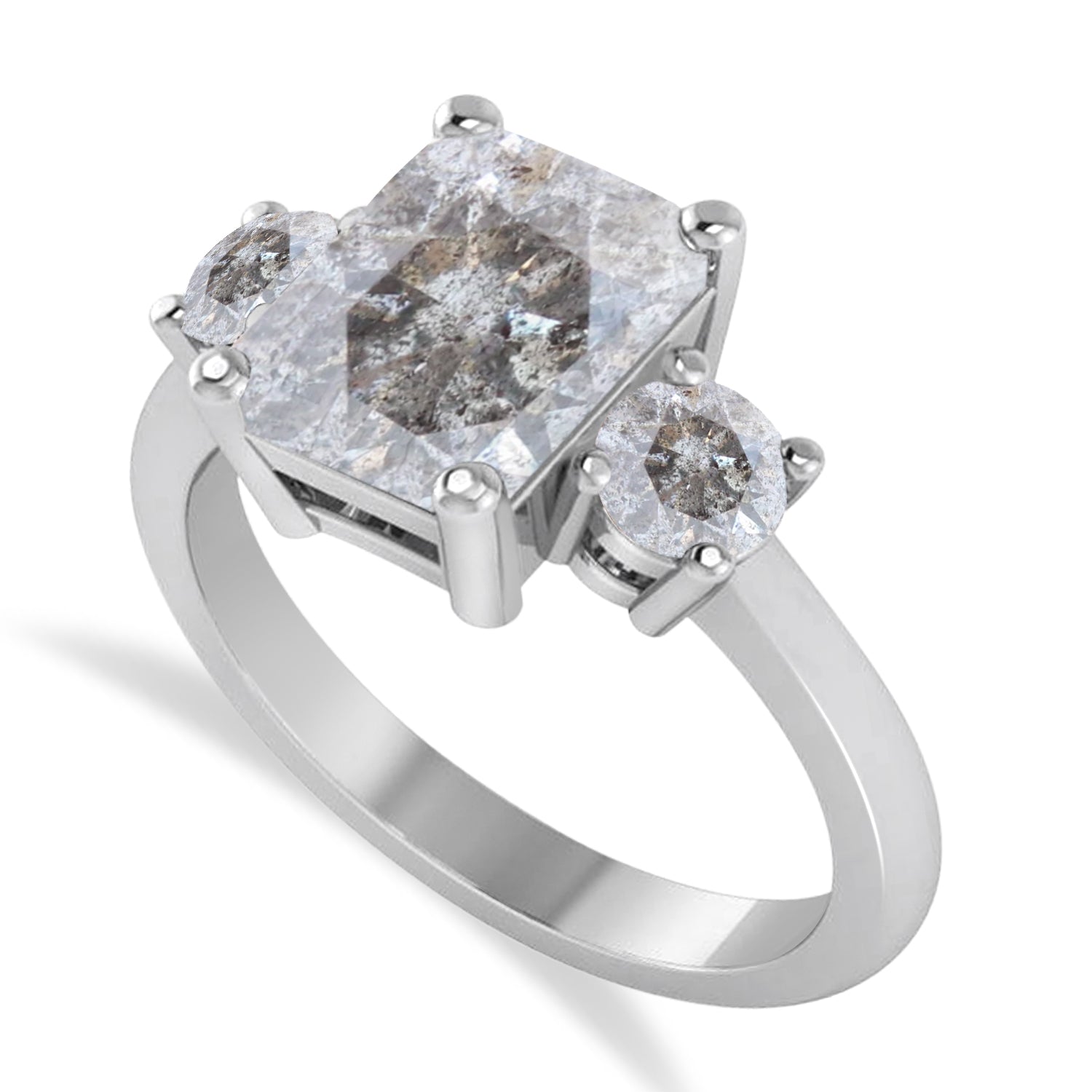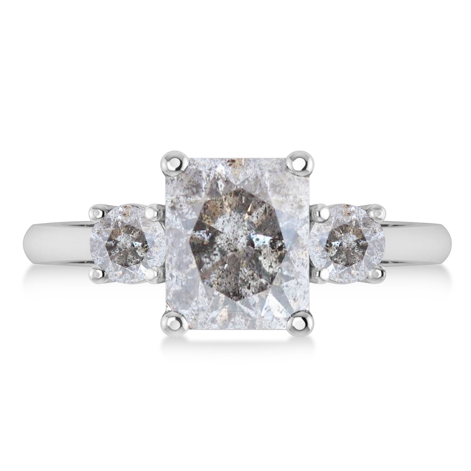 Emerald & Round 3-Stone Salt & Pepper Diamond Engagement Ring 14k White Gold (3.00ct)