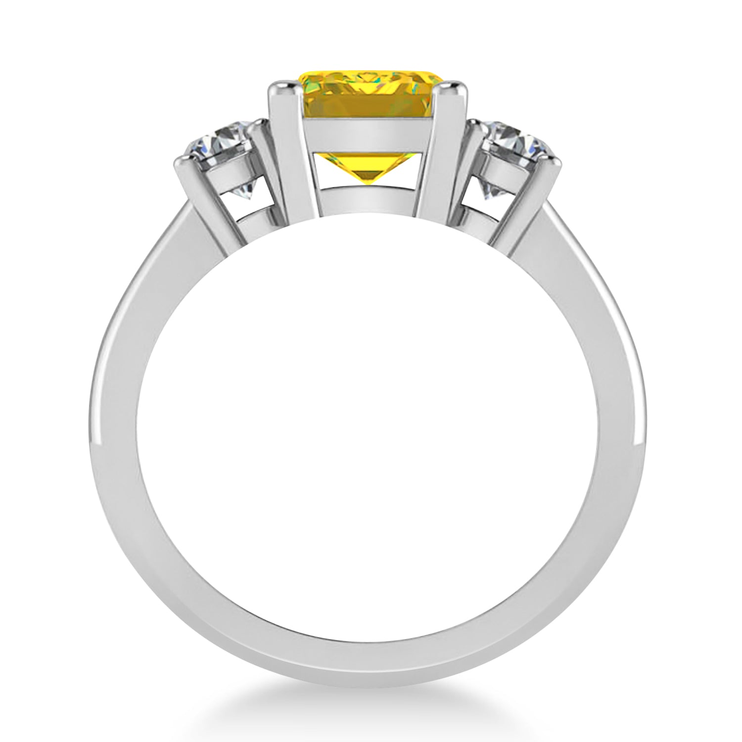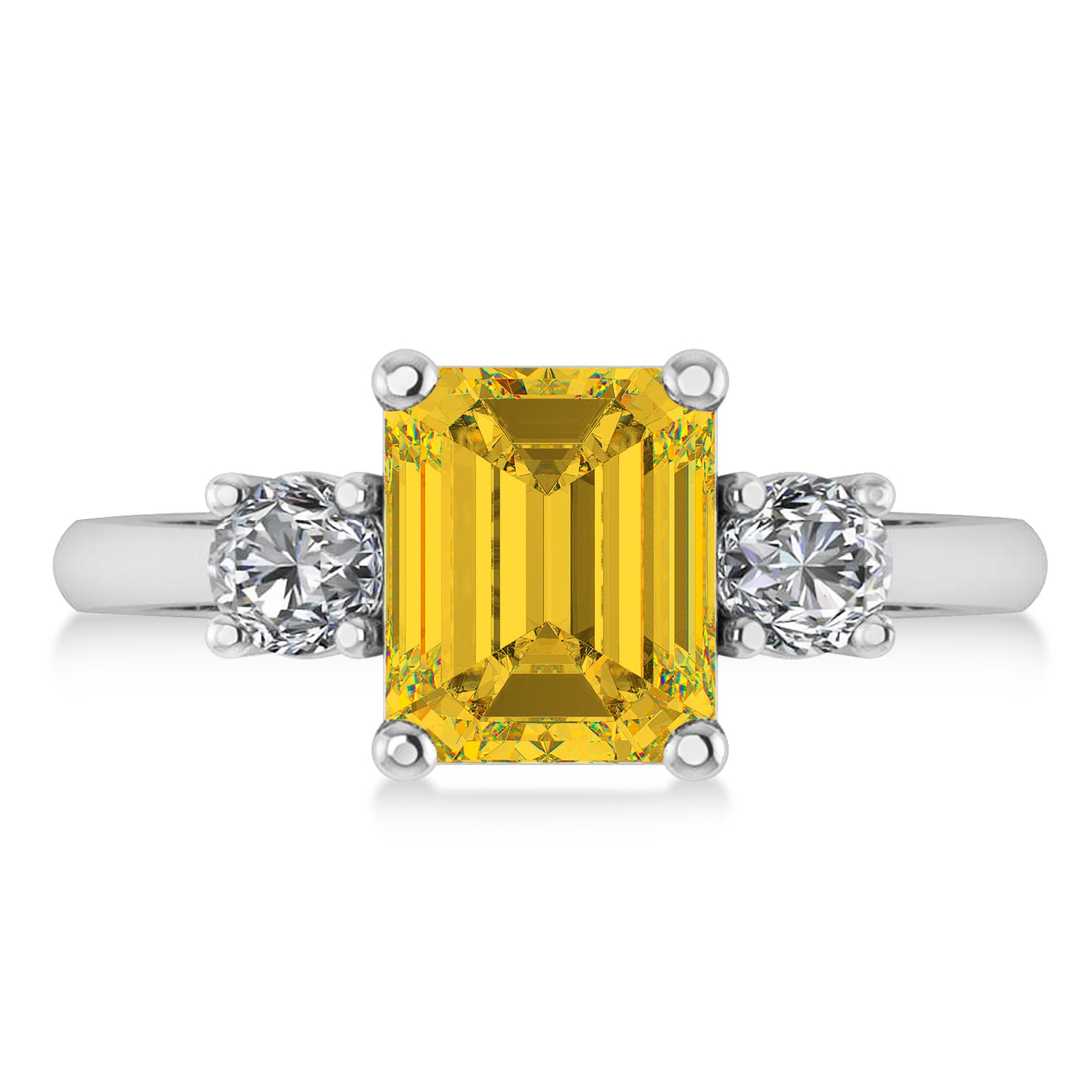Emerald & Round 3-Stone Yellow Sapphire & Diamond Engagement Ring 14k White Gold (3.00ct)