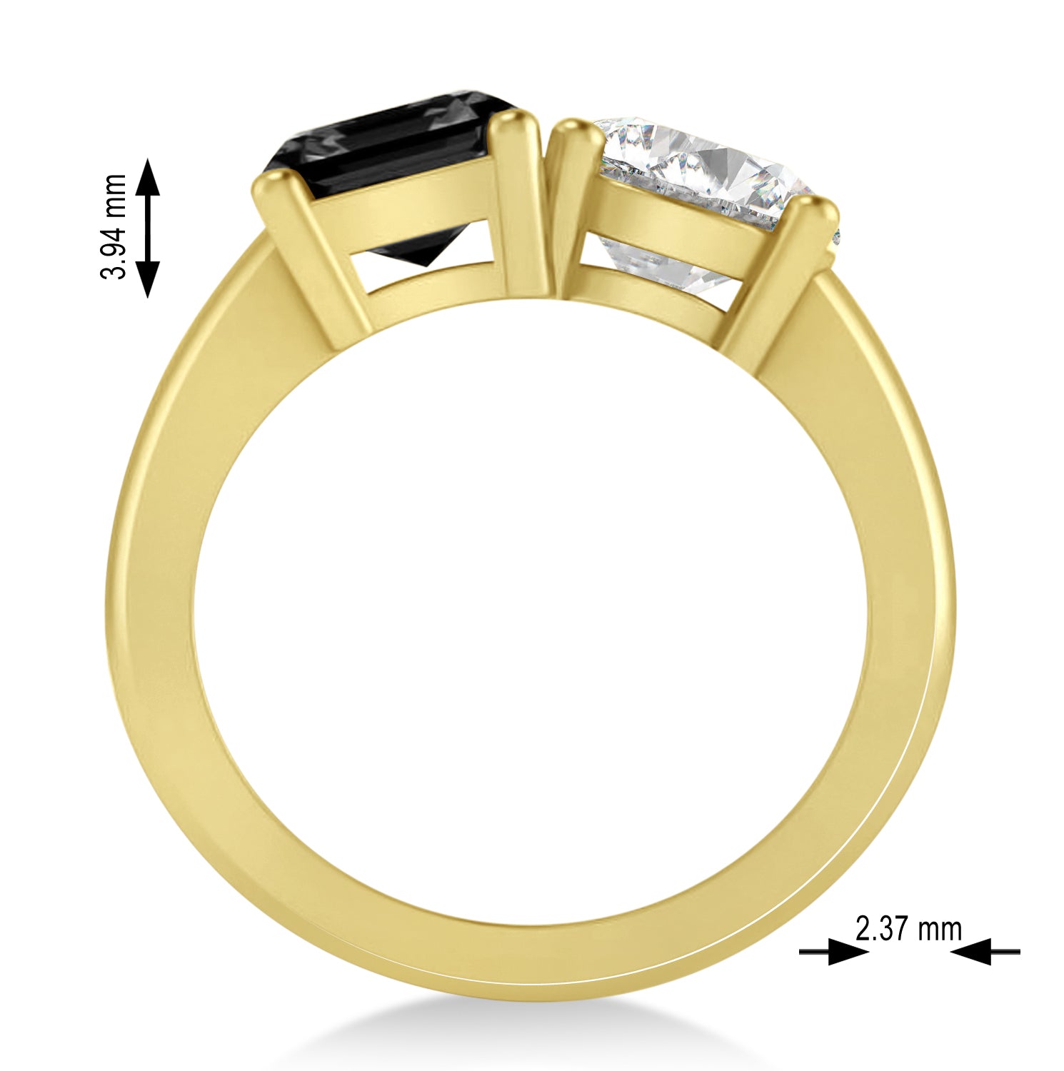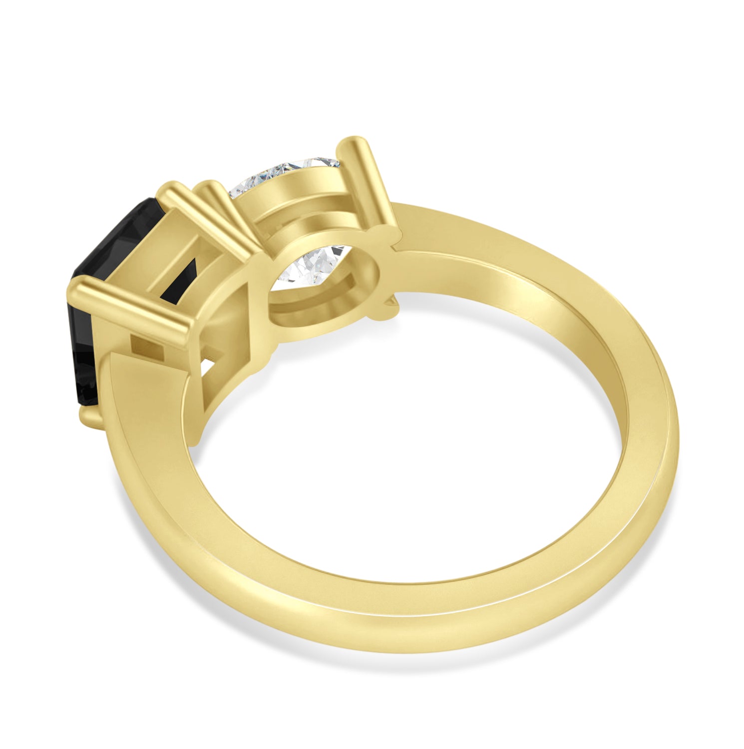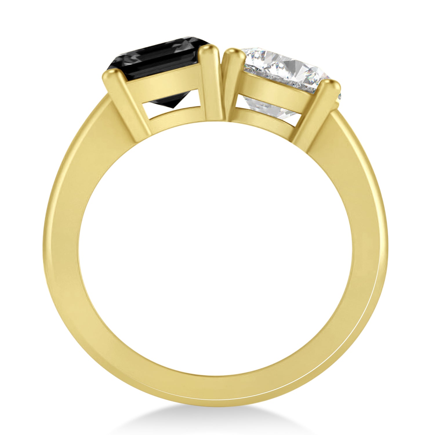 Emerald/Round Black & White Diamond Toi et Moi Ring 14k Yellow Gold (4.50ct)