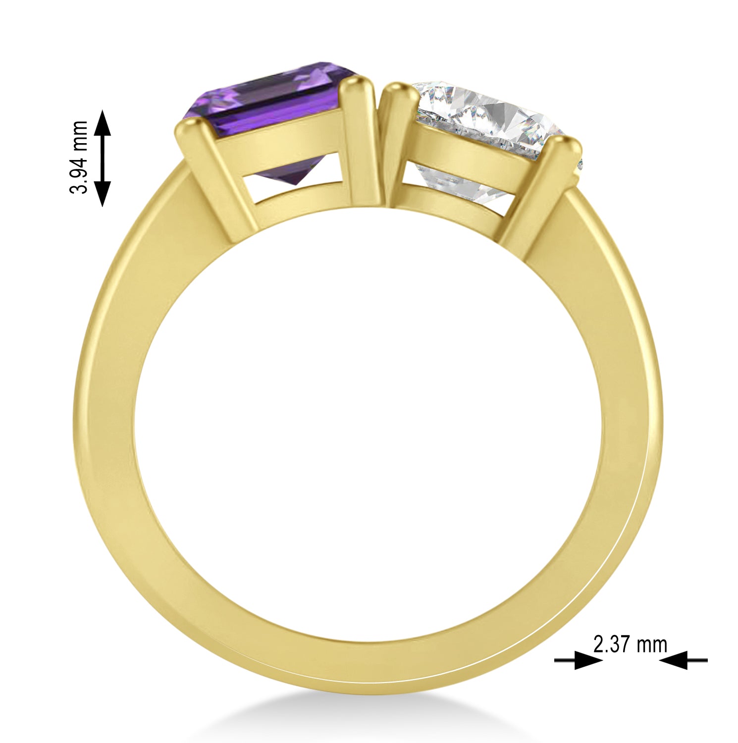 Emerald/Round Diamond & Amethyst Toi et Moi Ring 14k Yellow Gold (4.50