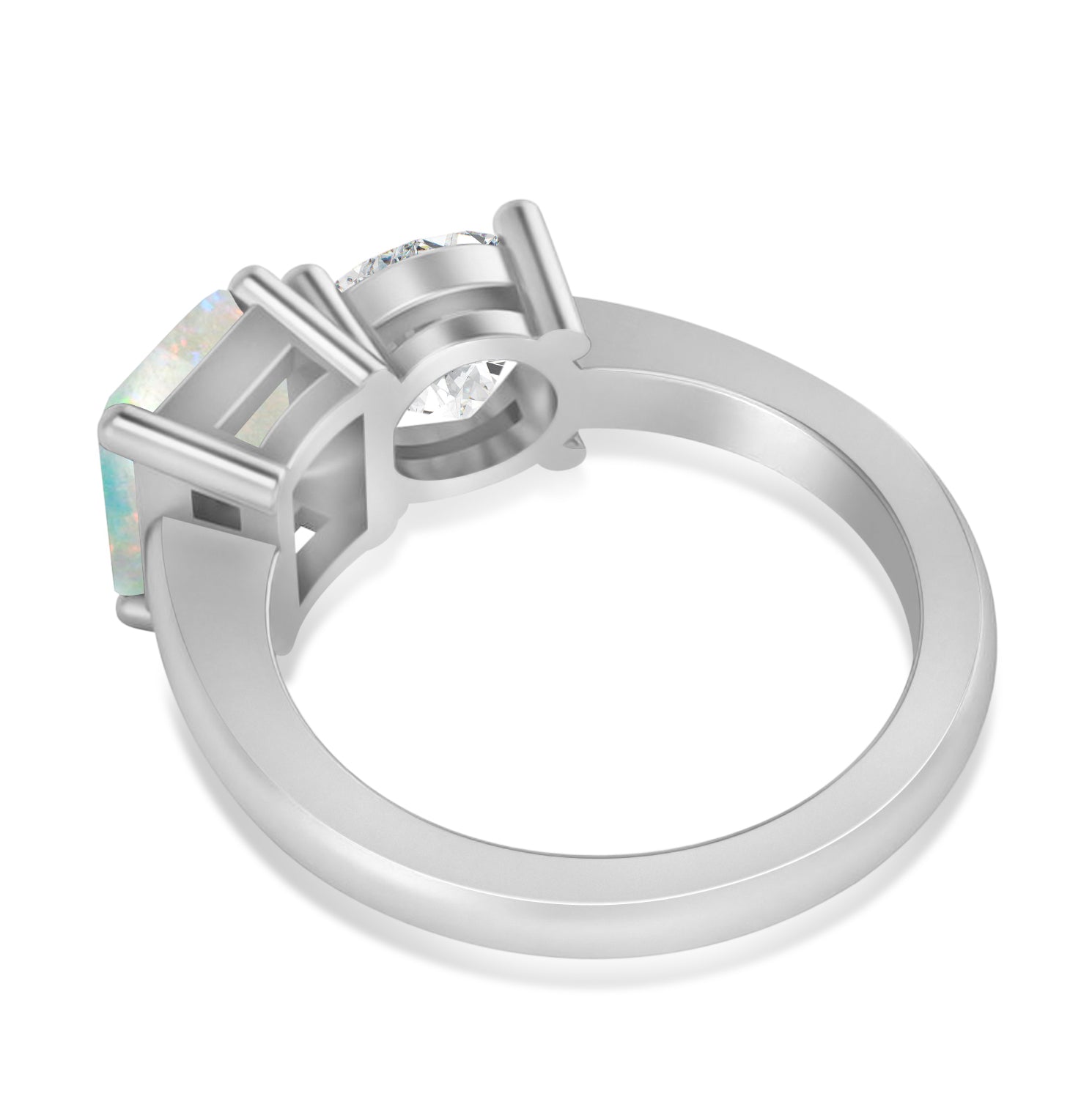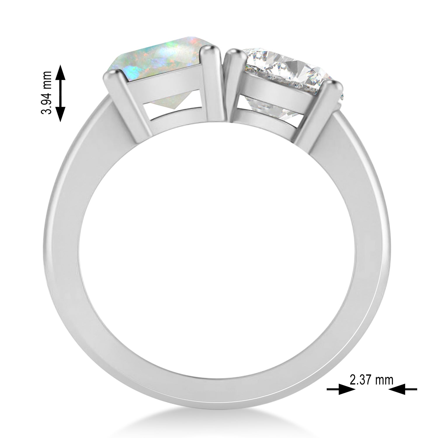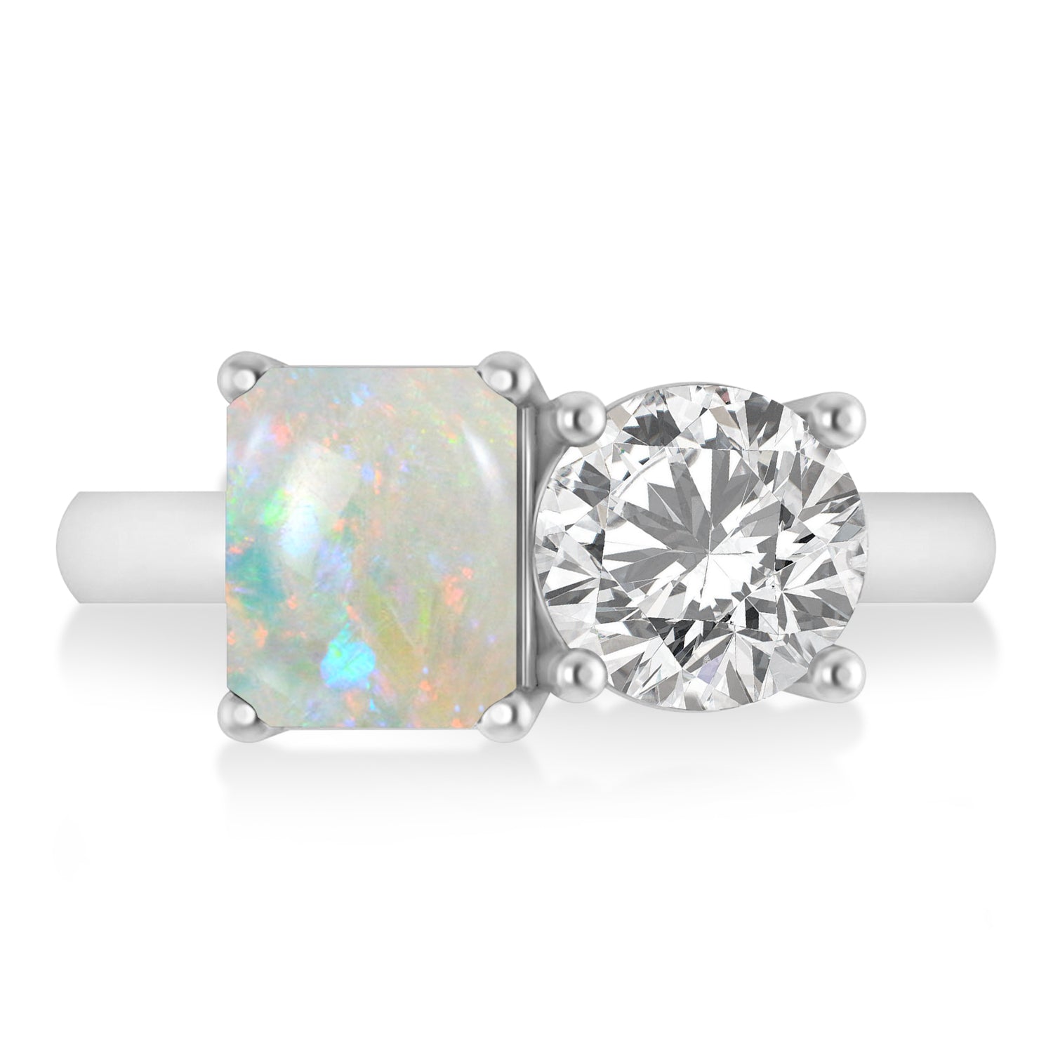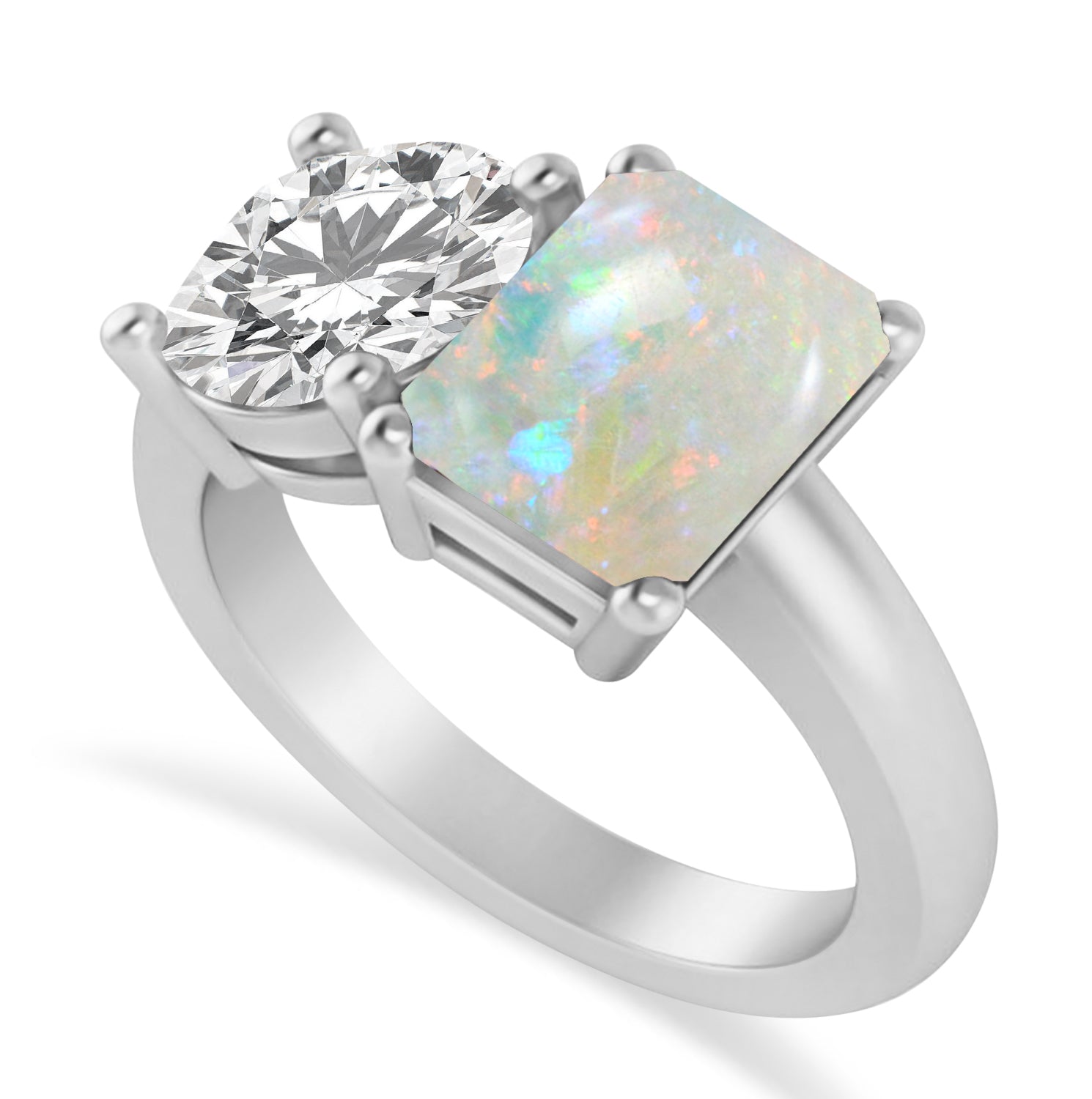 Emerald/Round Diamond & Opal Toi et Moi Ring 14k White Gold (4.50ct)