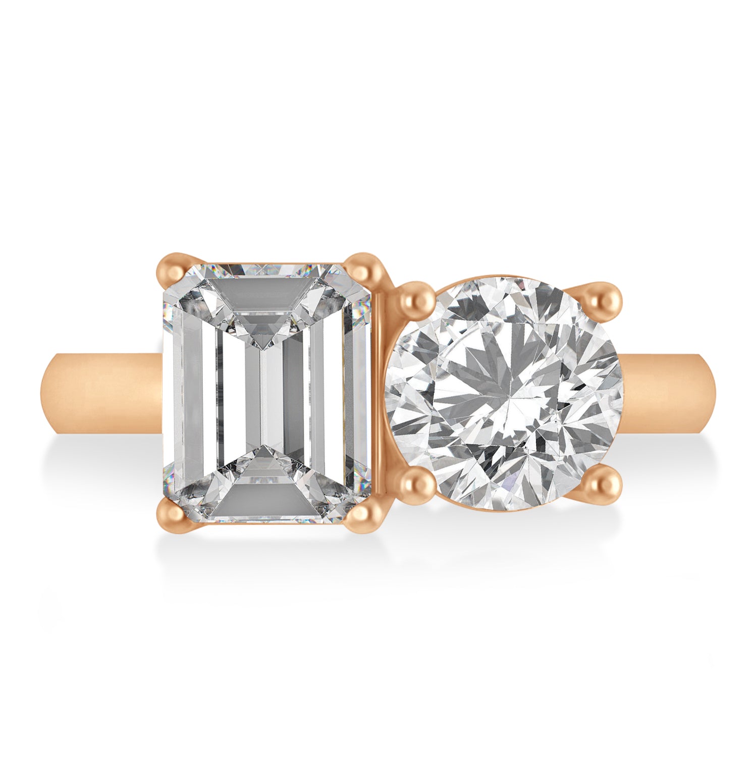 Emerald/Round Diamond Toi et Moi Ring 14k Rose Gold (4.50ct)