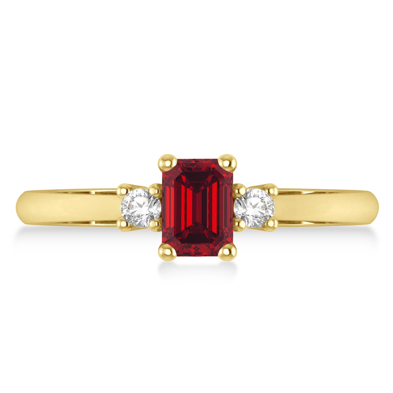 Emerald Ruby & Diamond Three-Stone Engagement Ring 14k Yellow Gold (0.60ct)