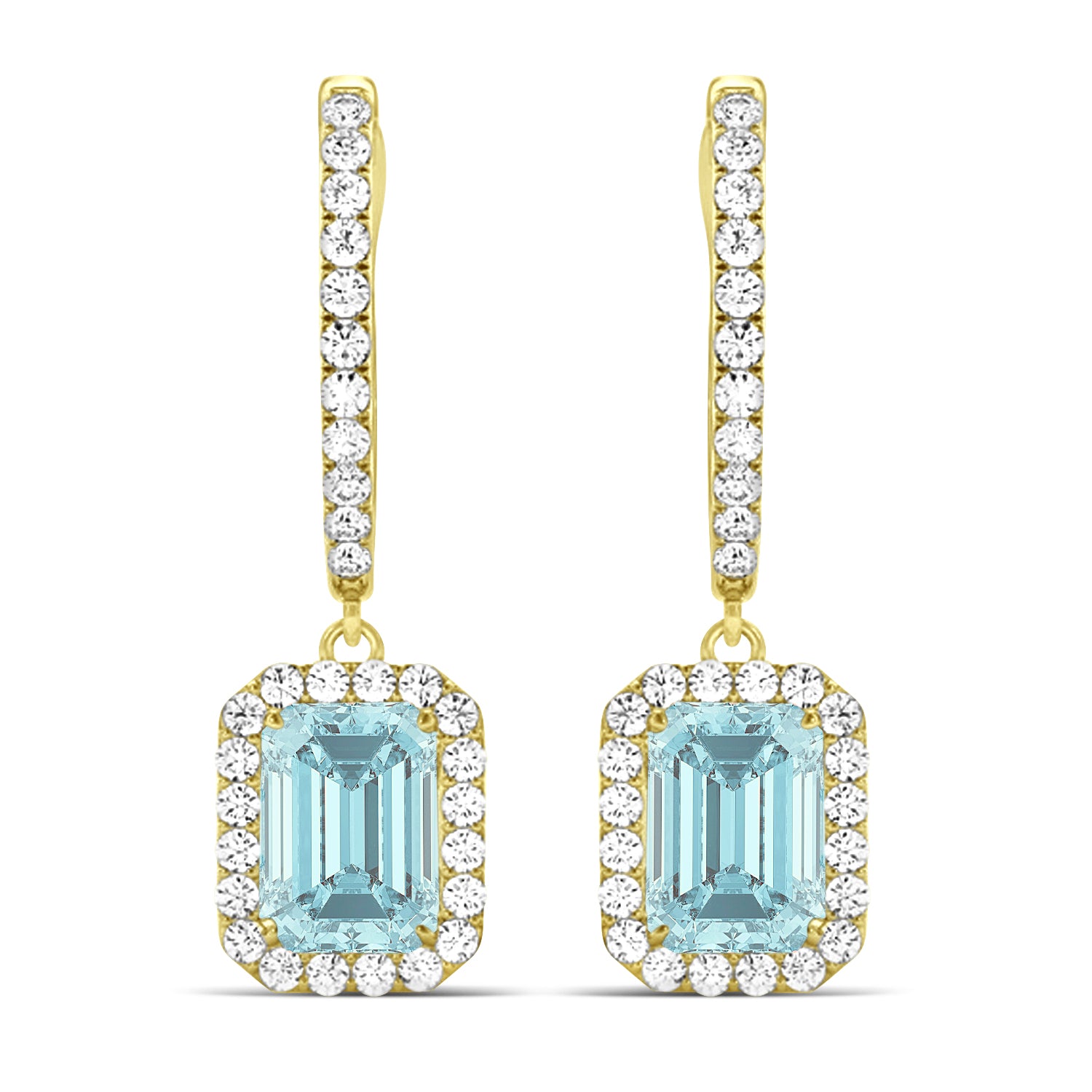 The Emerald Shape Aquamarine & Diamond Halo Dangling Earrings come in other metals and are also available set with other precious and semi-precious emerald-shaped stones.