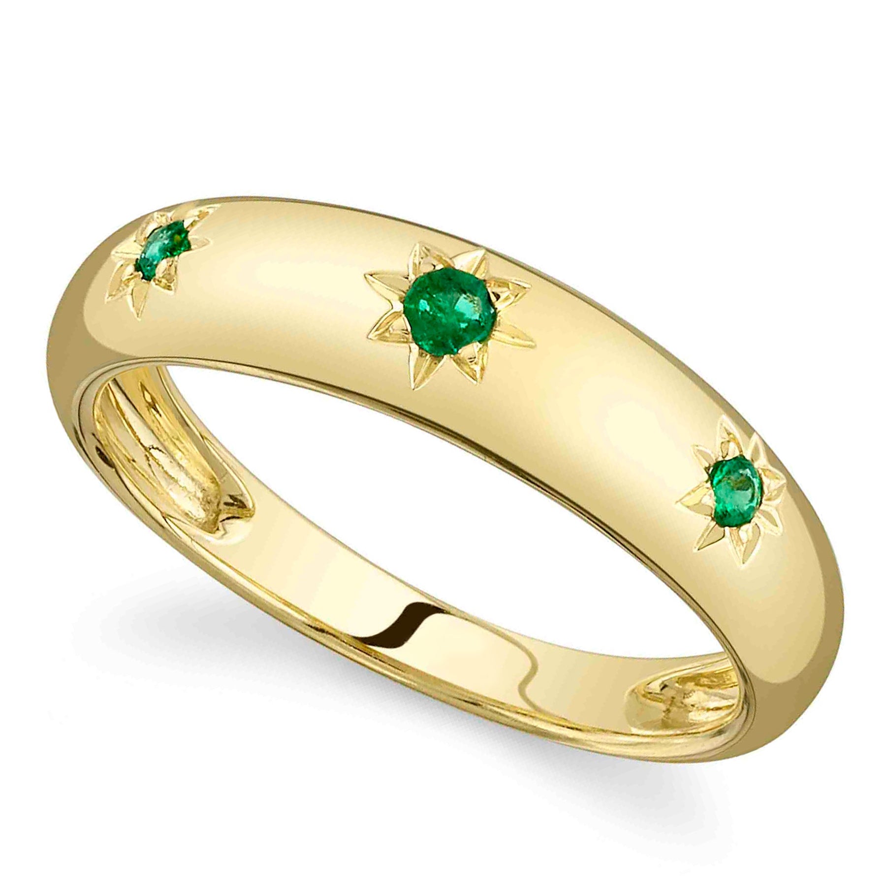 Experience timeless elegance with our Emerald Star Wide Band Ring, crafted in 14K yellow gold and featuring a captivating 0.09ct emerald. This exquisite ring combines classic design with a touch of color, making it a stunning choice for any occasion or as a meaningful gift
