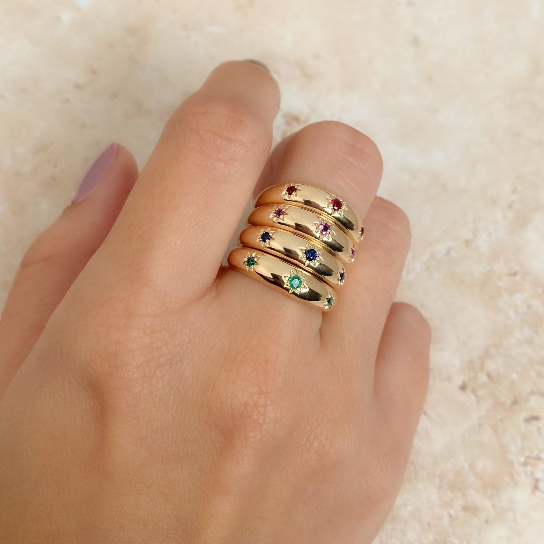 Experience timeless elegance with our Emerald Star Wide Band Ring, crafted in 14K yellow gold...