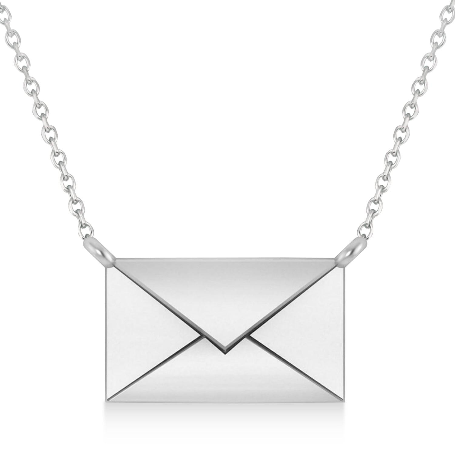 Engravable Love Letter Envelope Pendant Necklace 14k White Gold
