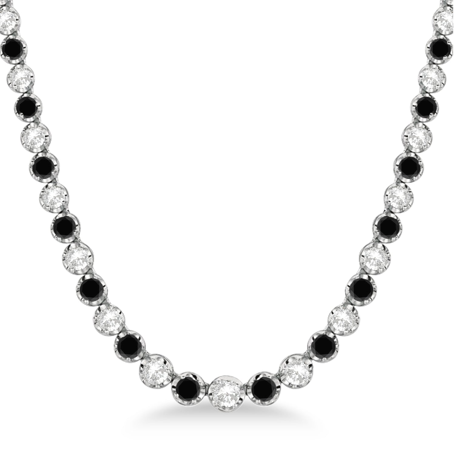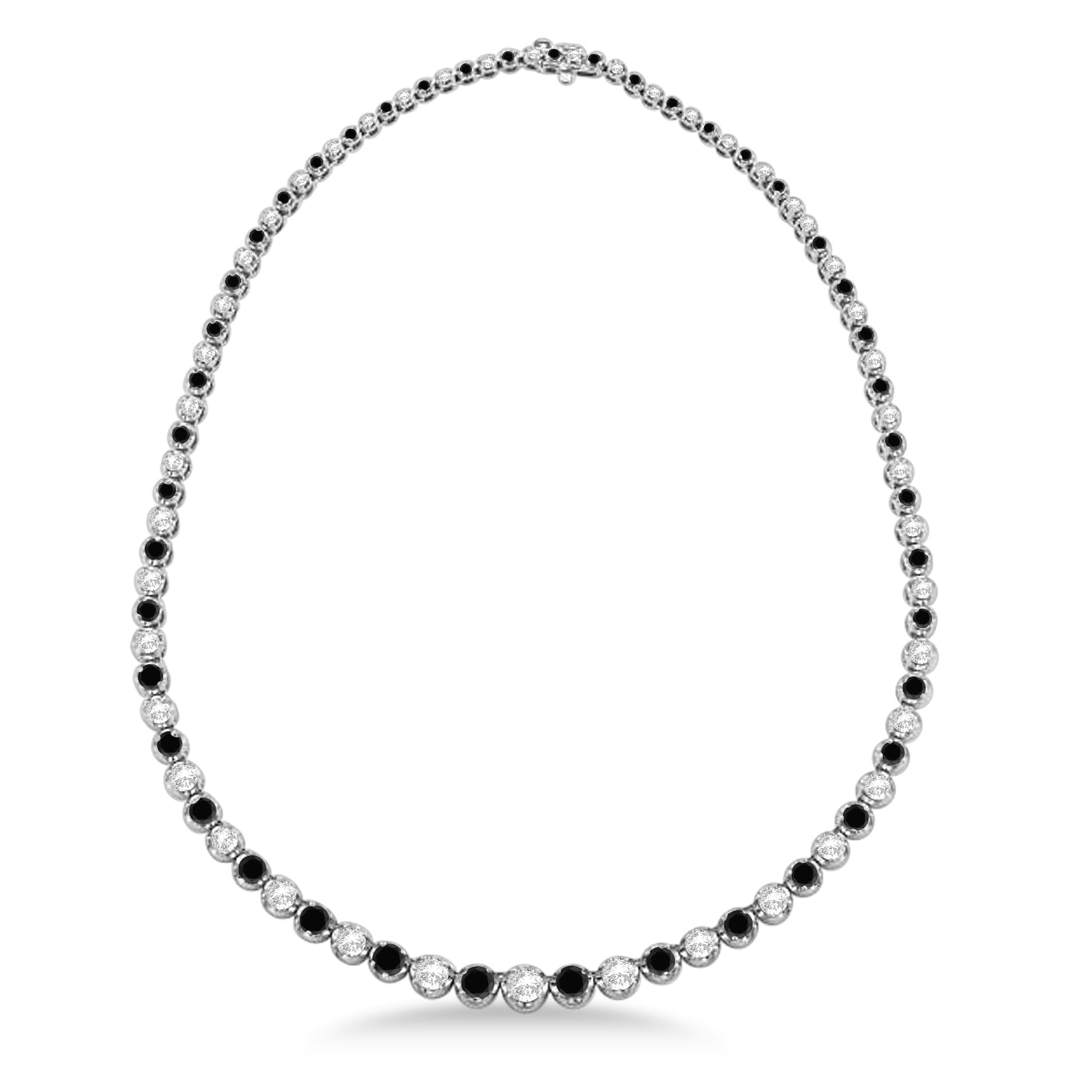 Eternity Black & White Diamond Tennis Necklace 14k White Gold (10.35ct)