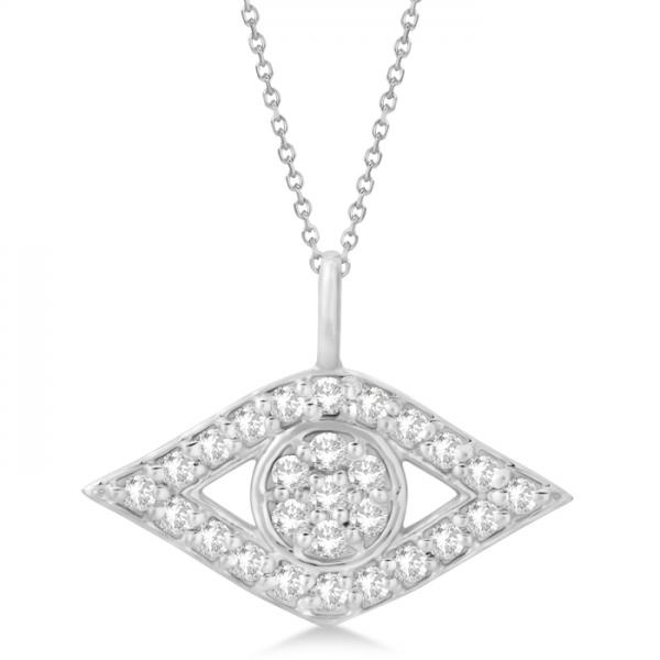 Evil Eye Diamond Pendant Necklace in 14k White Gold Pave Set (0.50ct)