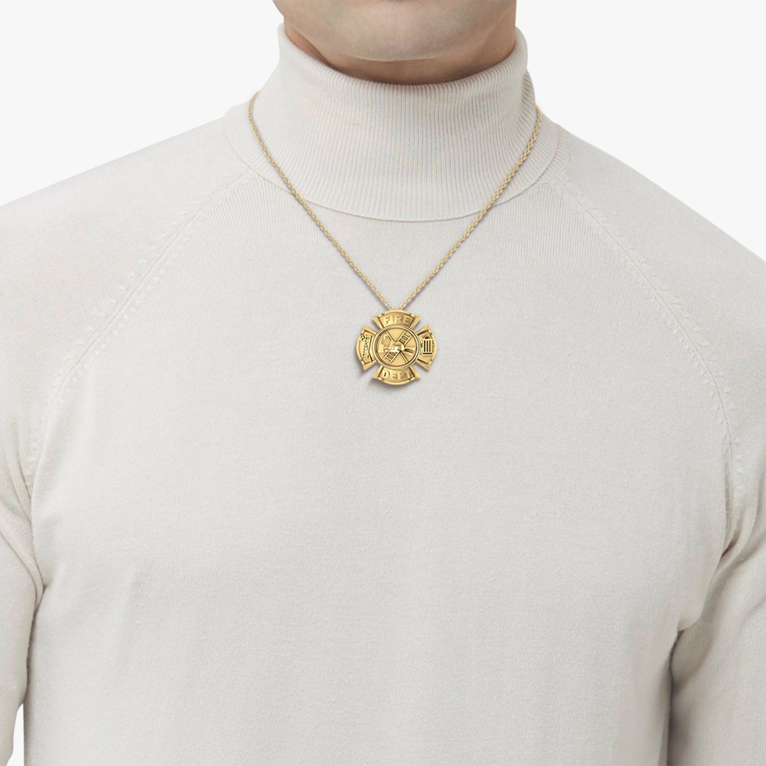 Honor a firefighter in your life with this Fire Department Badge Pendant Necklace, expertly designed and crafted in 14k yellow gold.