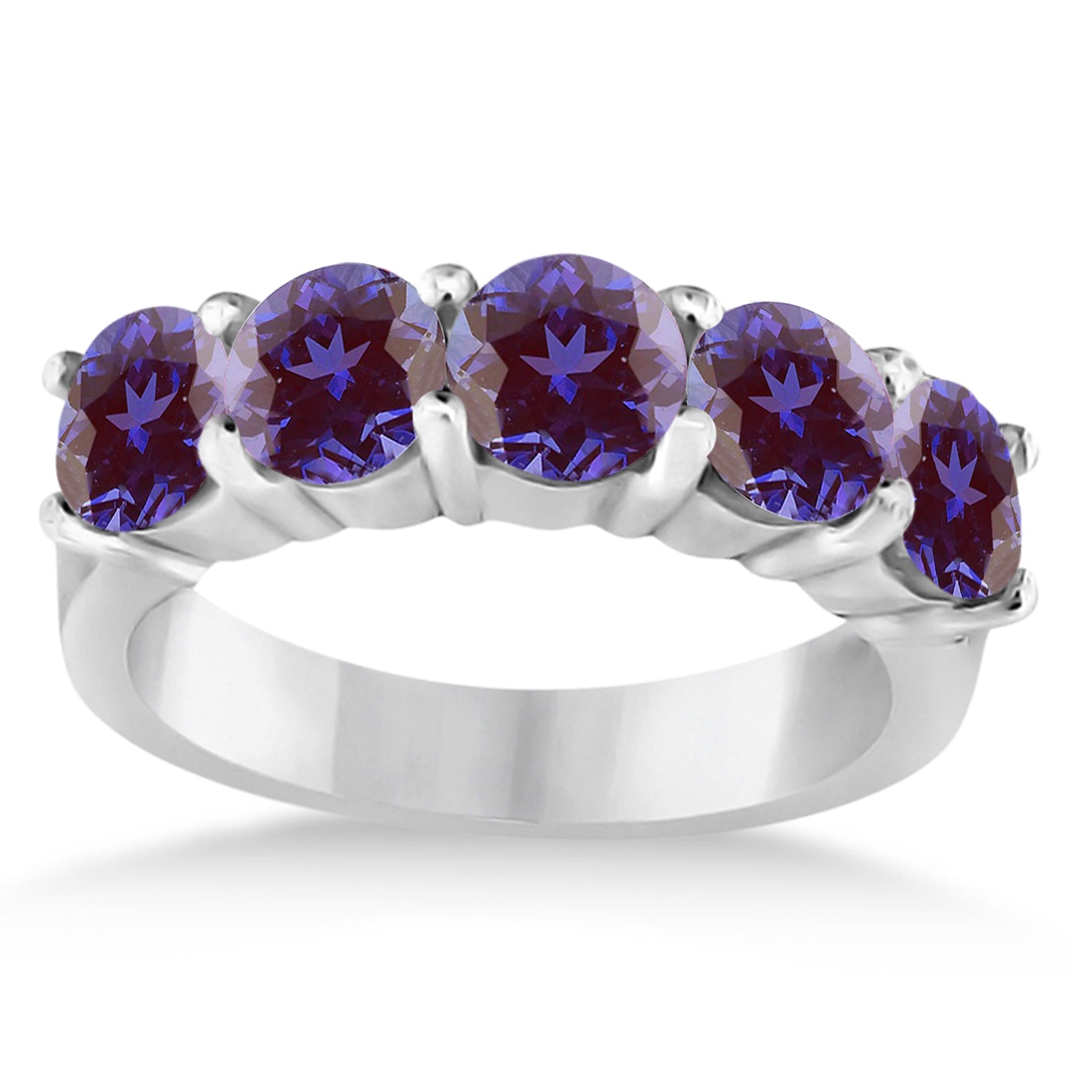 Five Stone Lab Grown Alexandrite Ring Anniversary Band 14k White Gold
