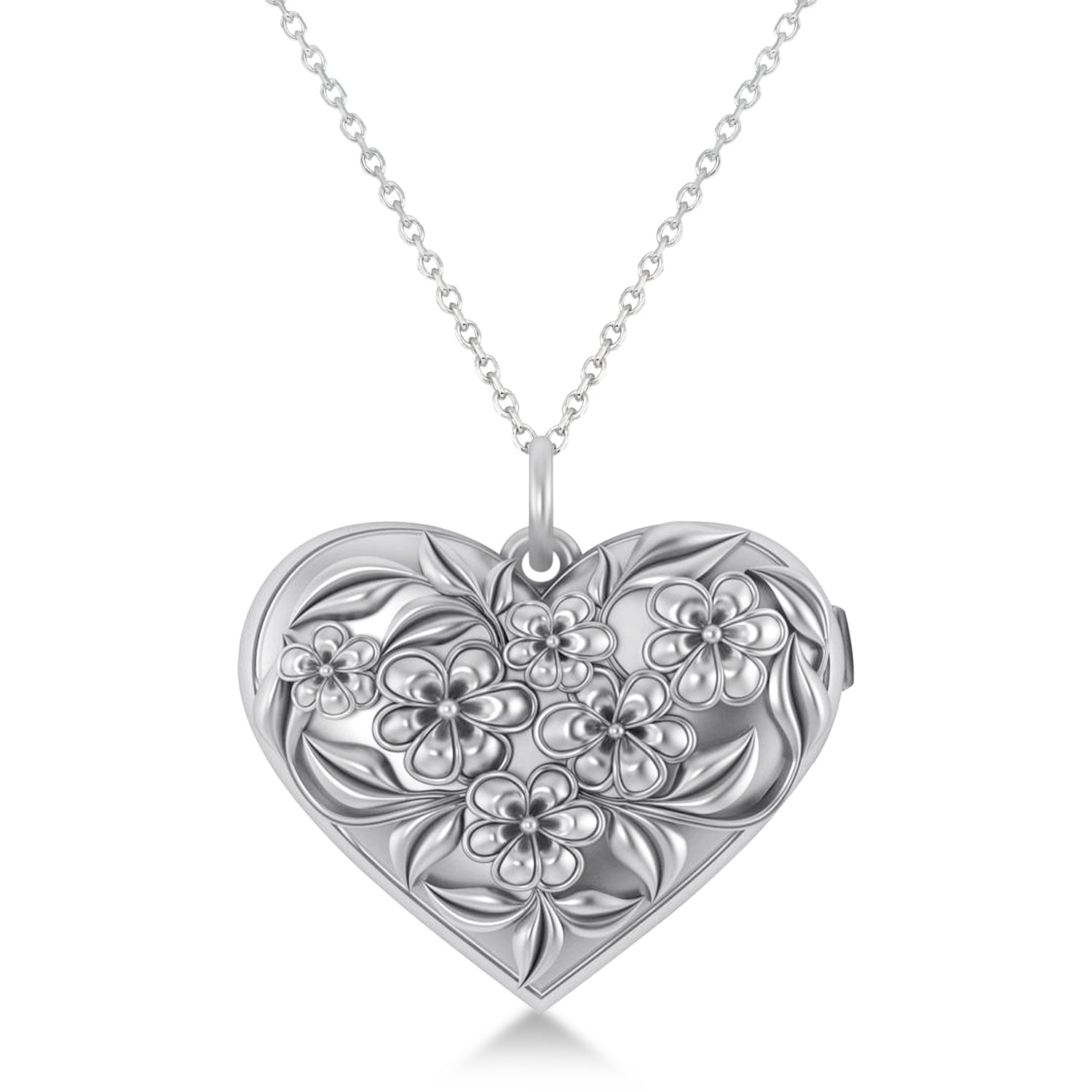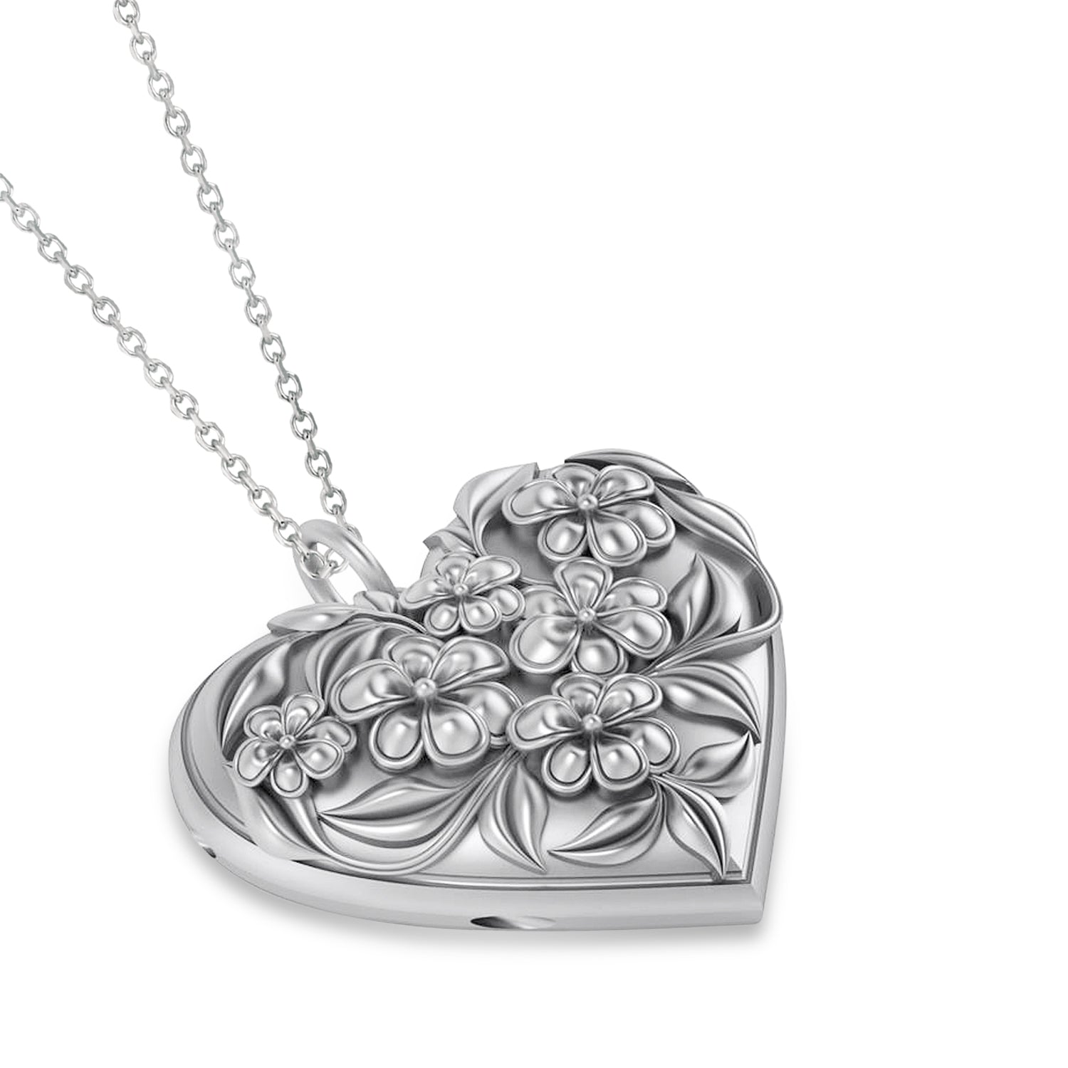This beautiful locket will go straight to her heart with a beautiful floral design ingrained into this locket pendant's 14k white gold setting.