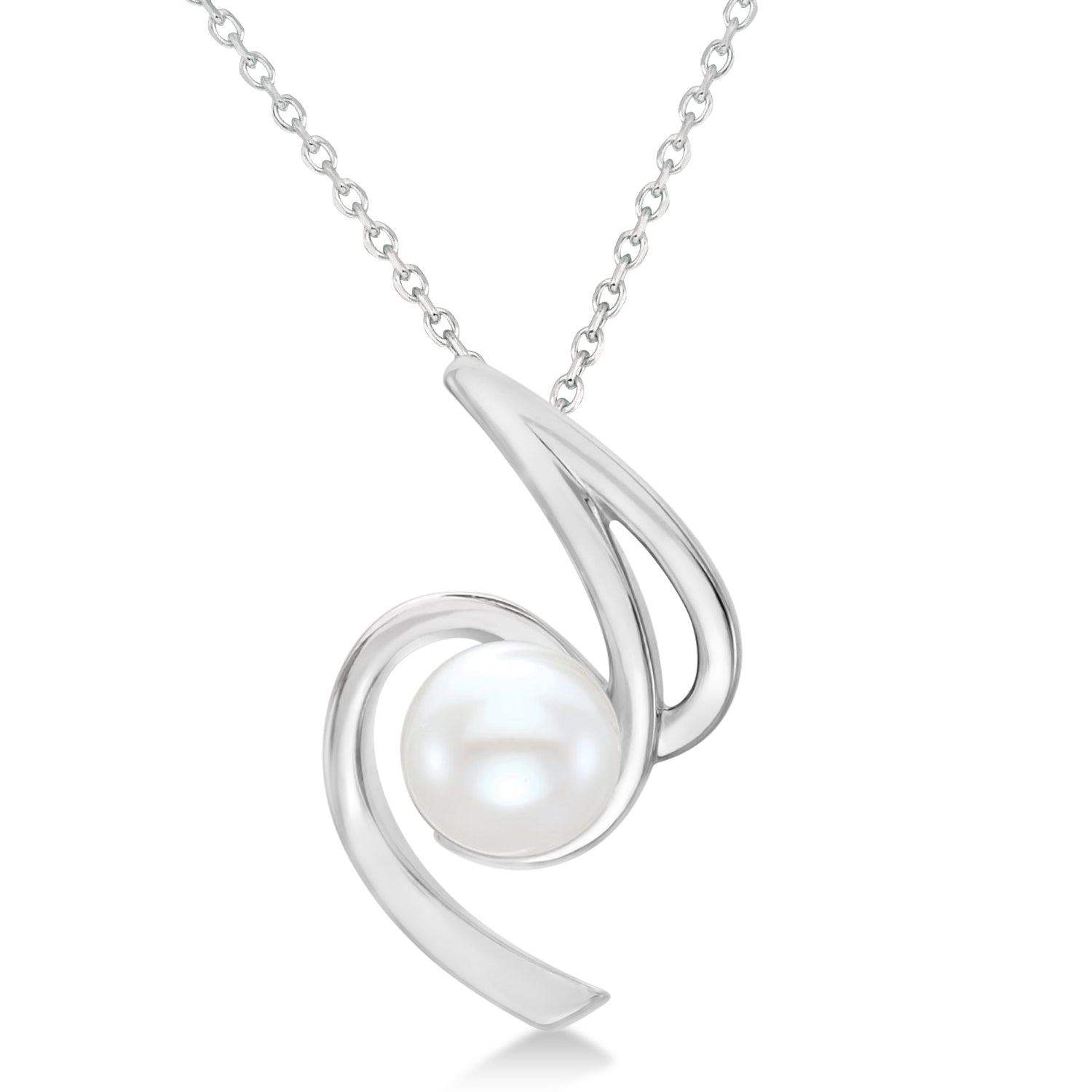 A dramatic swirl design showcases the singular pearl in this contemporary Freeform Cultured Freshwater Pearl Pendant. Set in 14k white gold, the pendant comes with your choice of a 16" or 18" matching chain at no additional cost.
