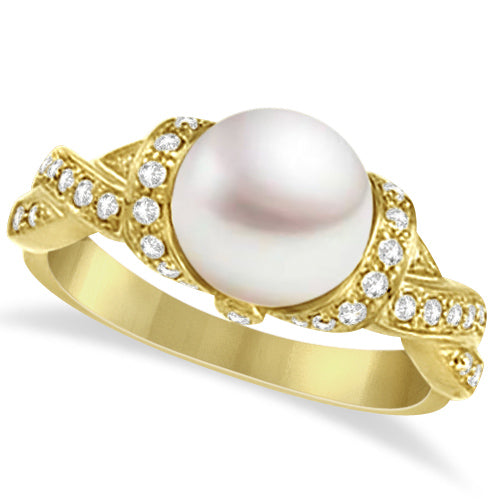 Freshwater Cultured Pearl & Diamond Ring 14k Yellow Gold .25ctw (8mm)