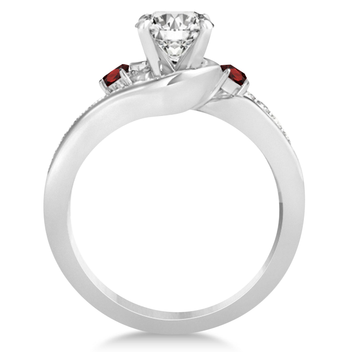 Garnet & Diamond Swirl Engagement Ring & Band Bridal Set 18k White Gol