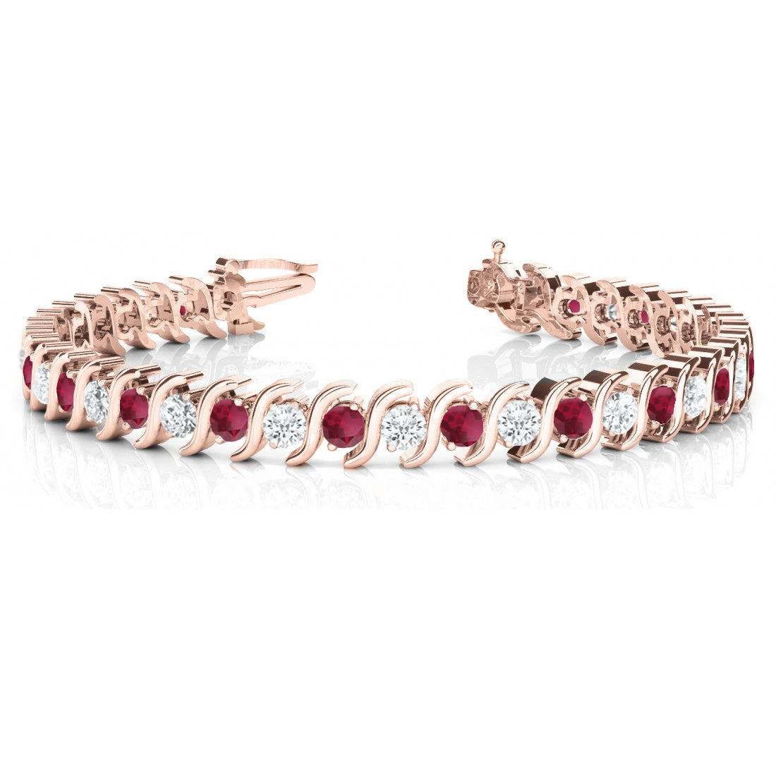 Garnet & Diamond Tennis S Link Bracelet 14k Rose Gold (4.00ct)