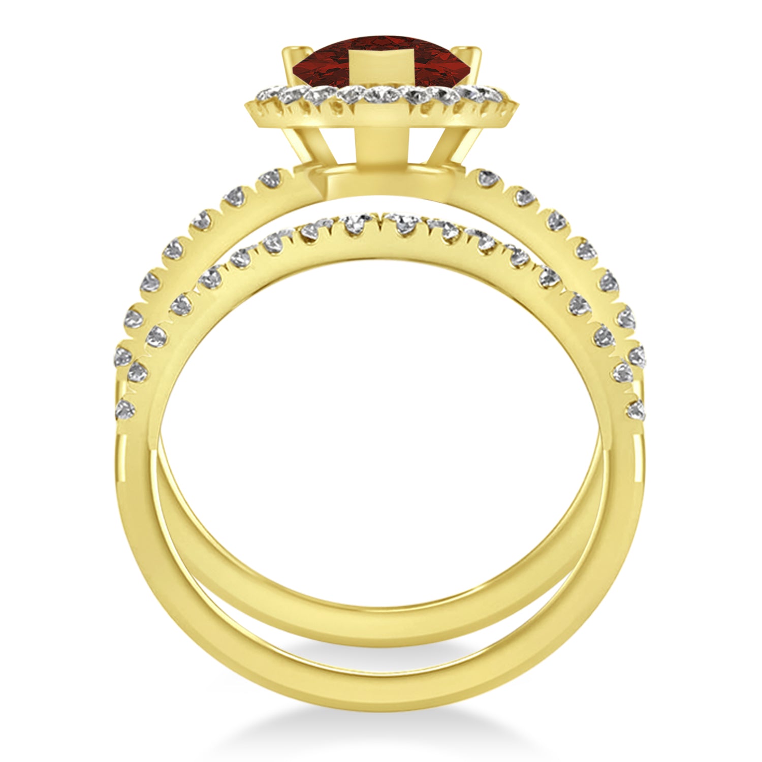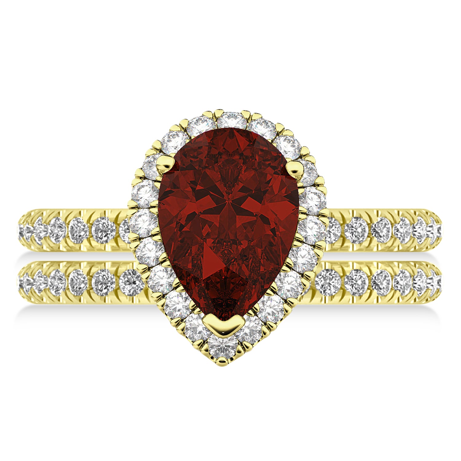 Garnet & Diamonds Pear-Cut Halo Bridal Set 14K Yellow Gold (2.58ct)