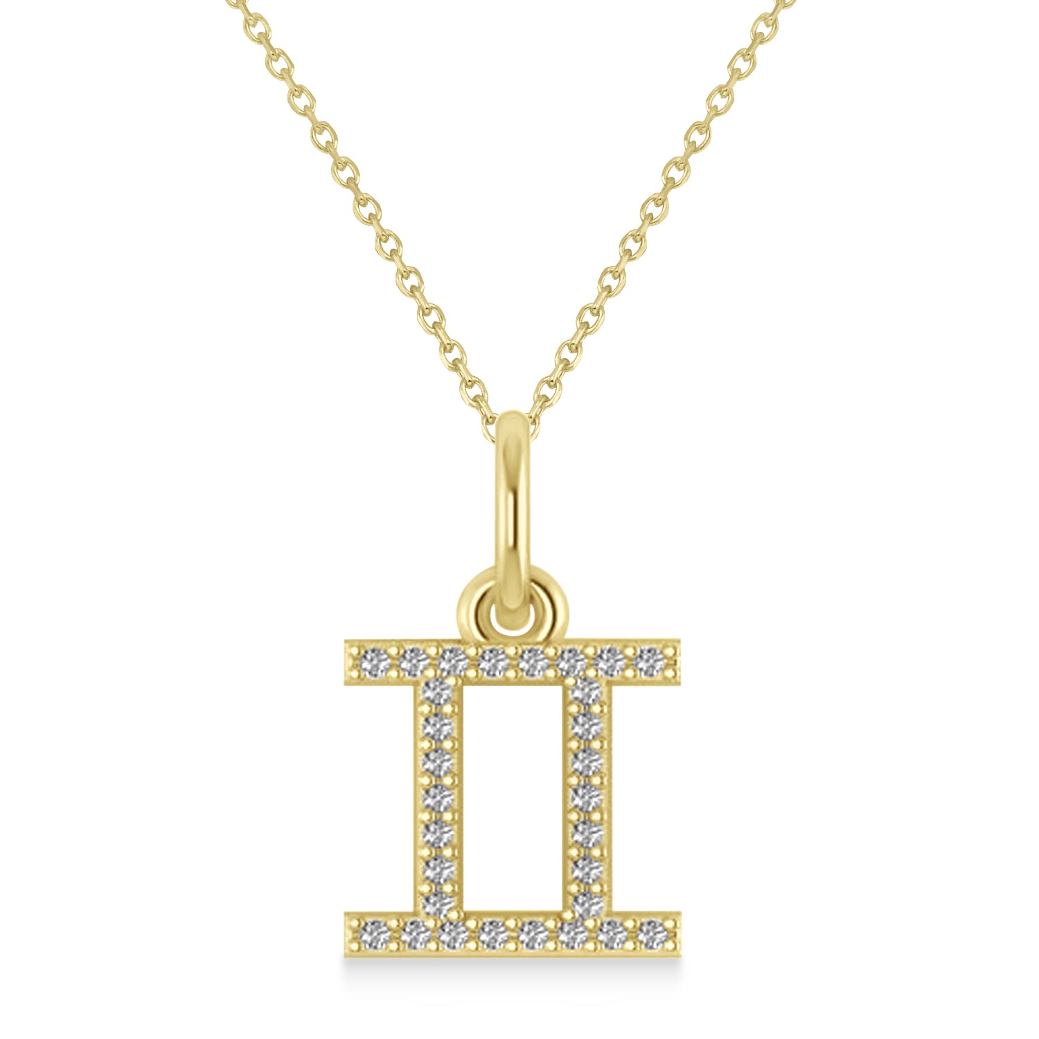 Allow your sun sign to shine brightly with the Gemini Zodiac Diamond Pendant Necklace, prong set with glittering diamonds in 14k yellow gold.
