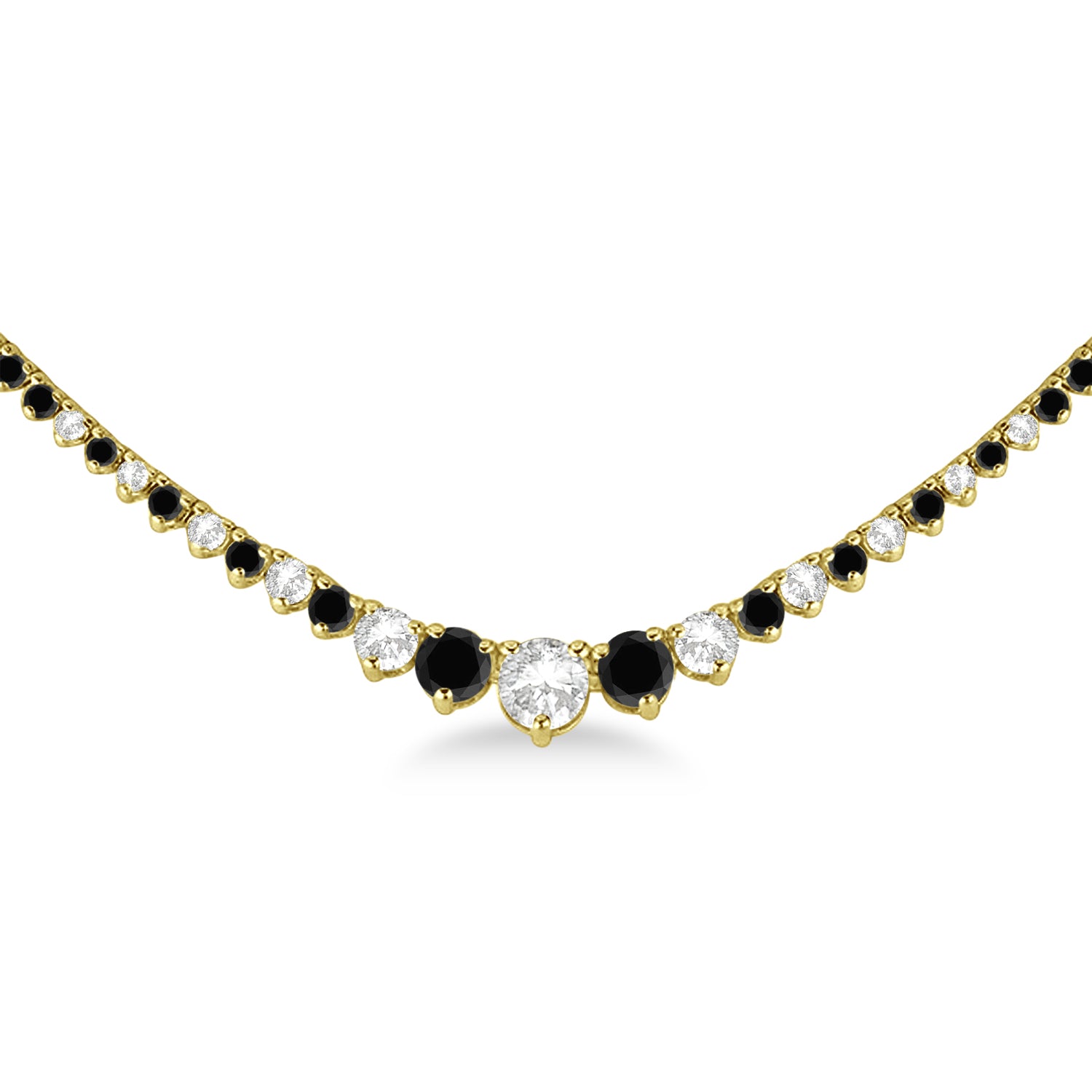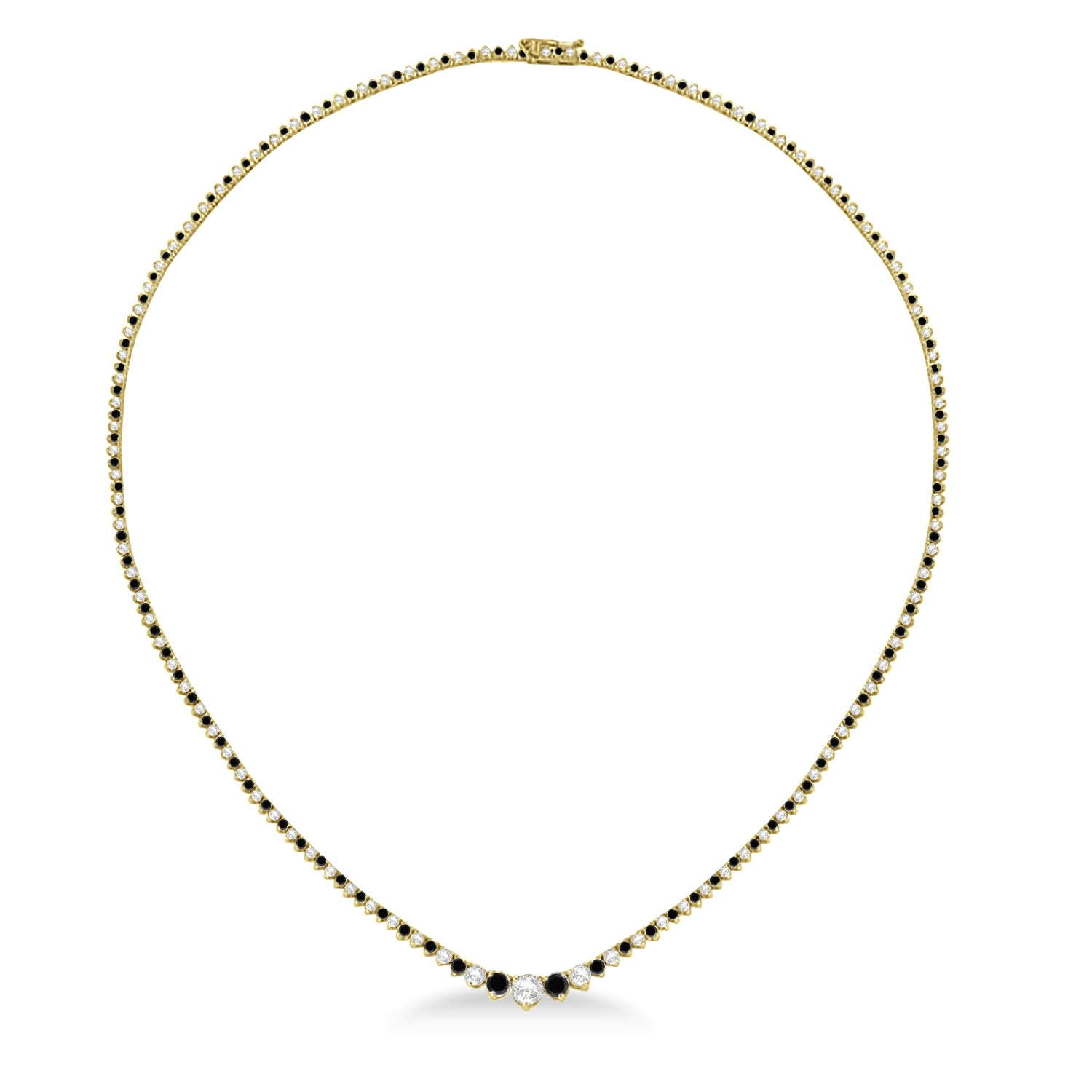 Graduated Eternity Black & Lab White Diamond Tennis Necklace 14k Yellow Gold (5.25ct)