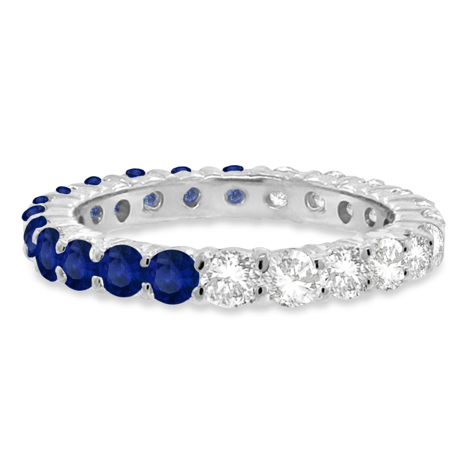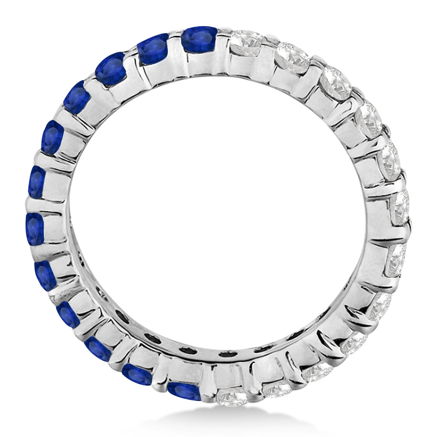 Half Diamond & Half Blue Sapphire Eternity Ring Band 14K White Gold (1