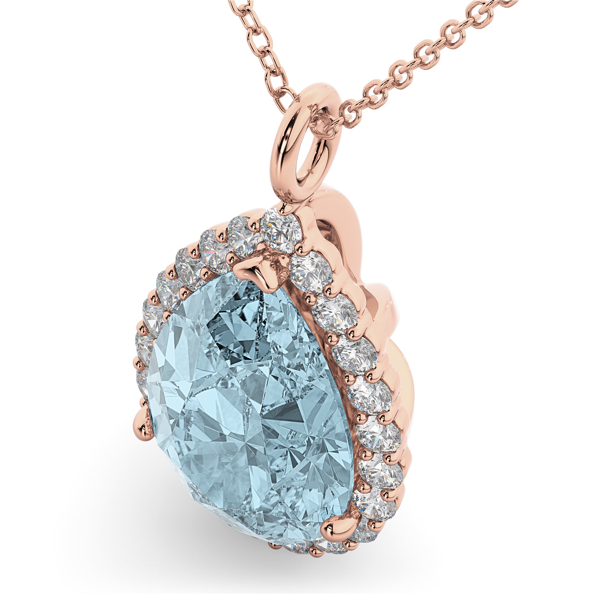 Halo Aquamarine & Diamond Pear Shaped Pendant Necklace 14k Rose Gold (6.04ct)