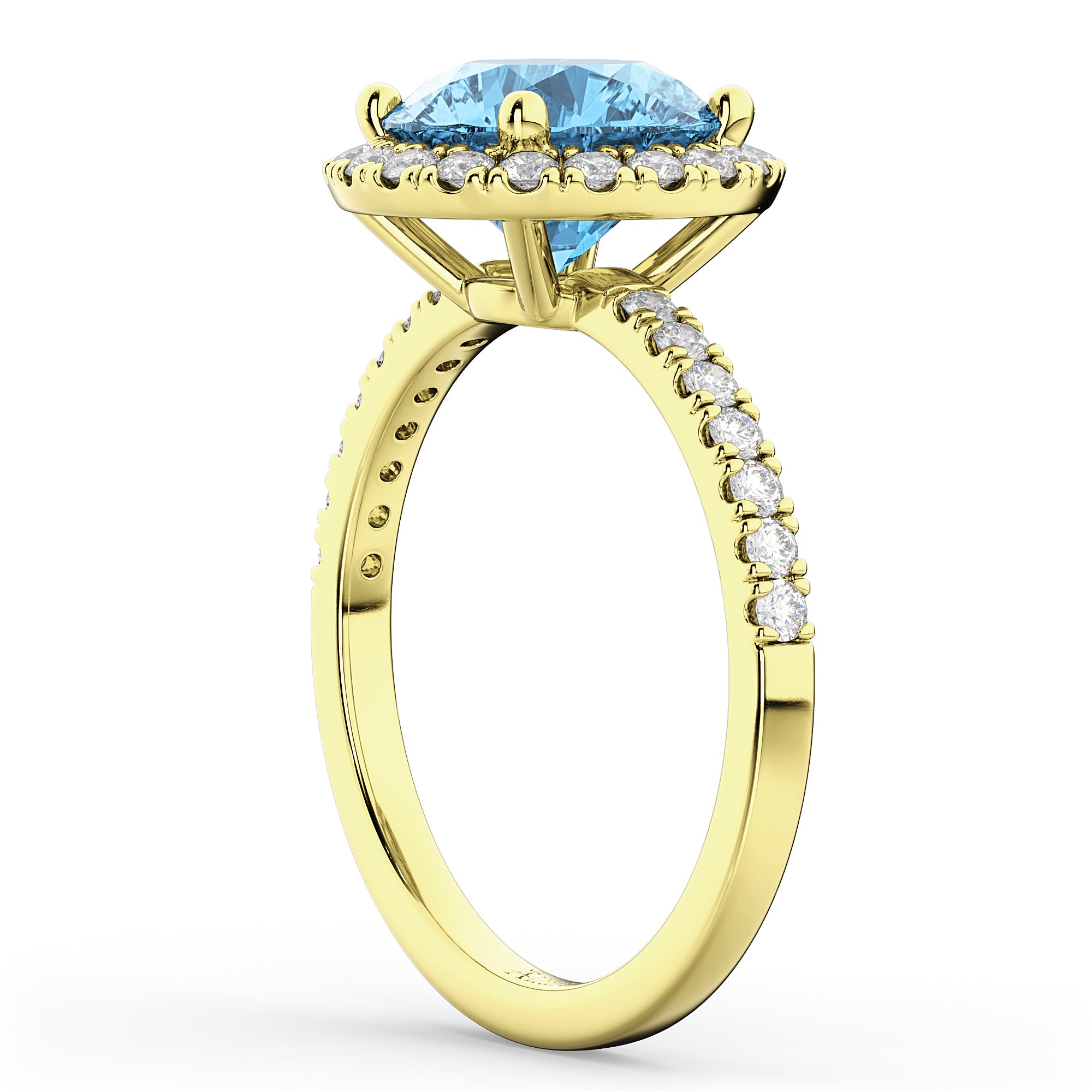 Halo Blue Topaz & Diamond Engagement Ring 18K Yellow Gold 3.00ct