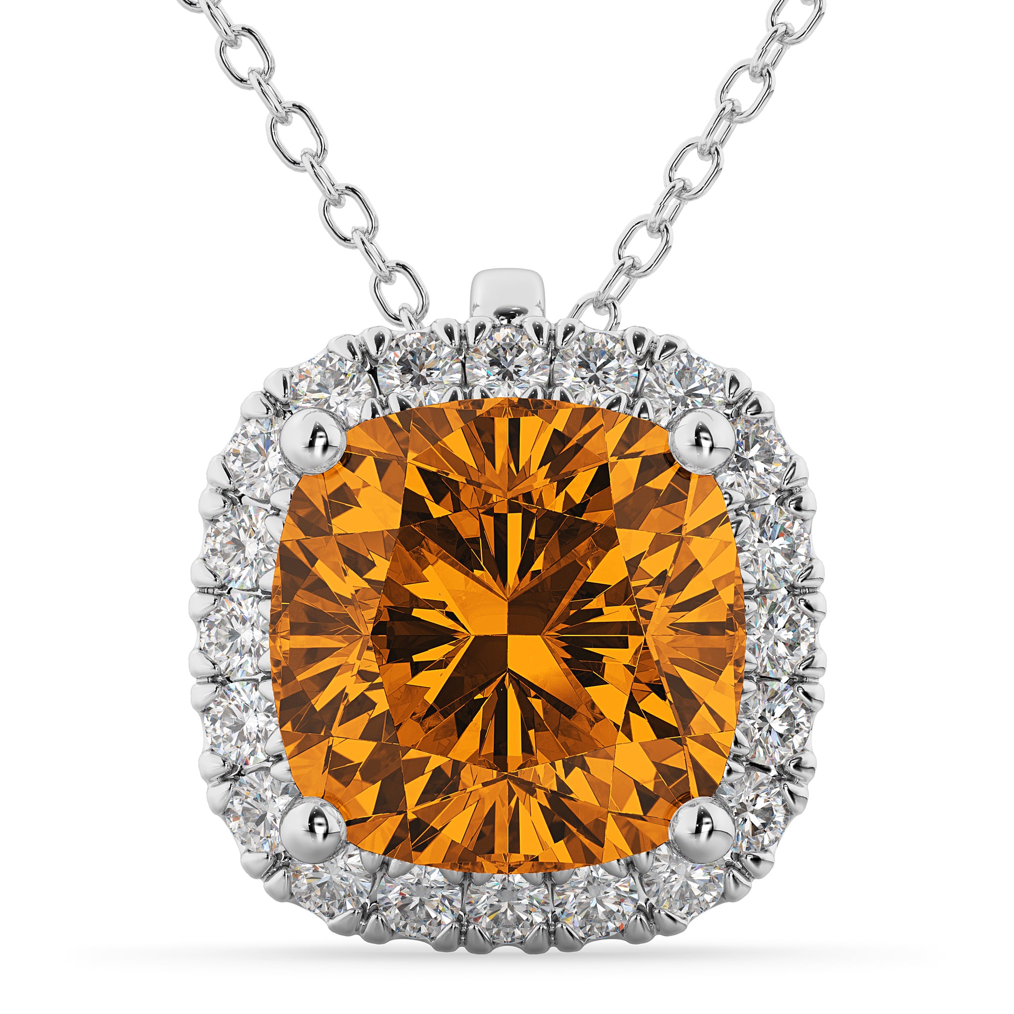 Halo Citrine Cushion Cut Pendant Necklace 14k White Gold (2.02ct)