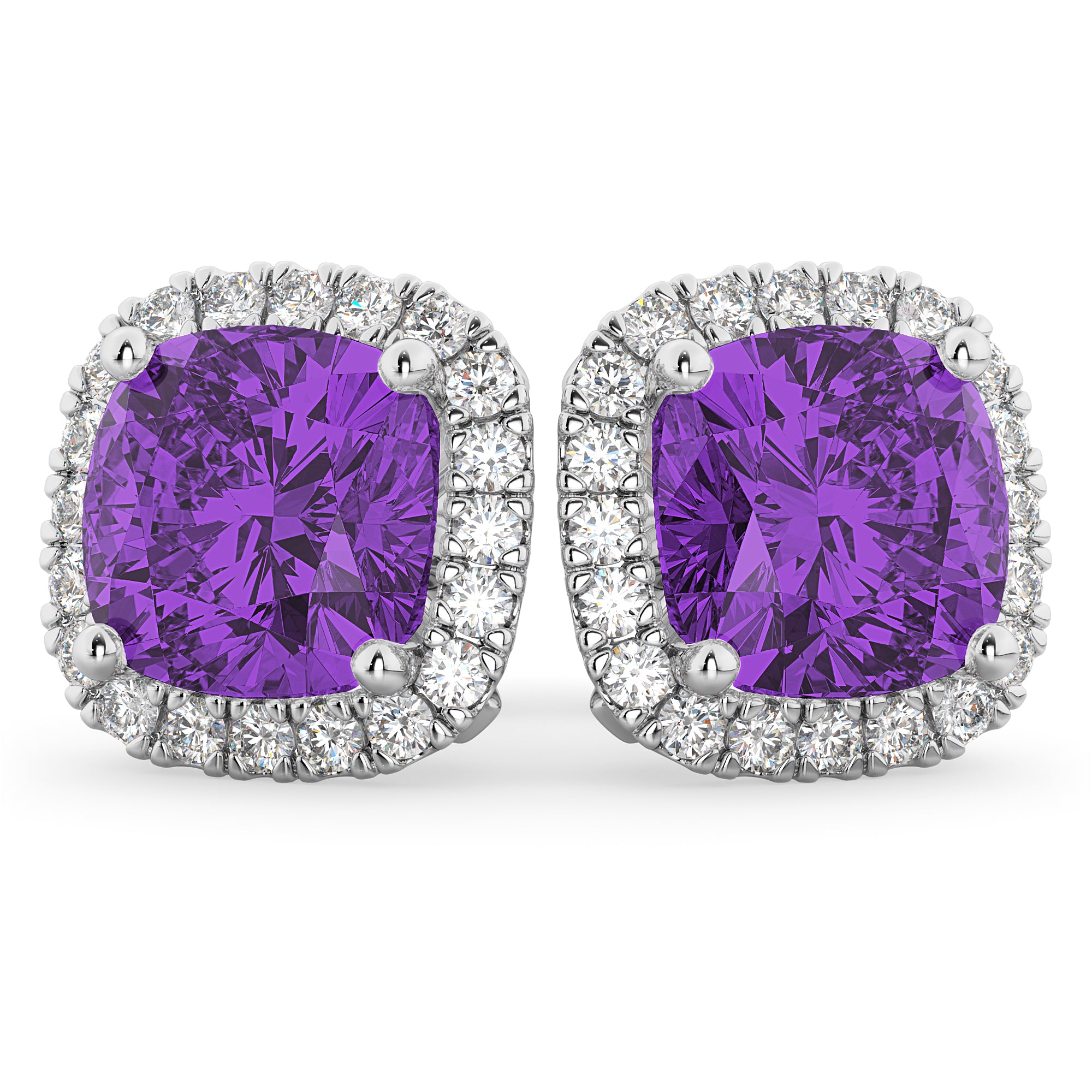 Halo Cushion Amethyst & Diamond Earrings 14k White Gold (4.04ct)