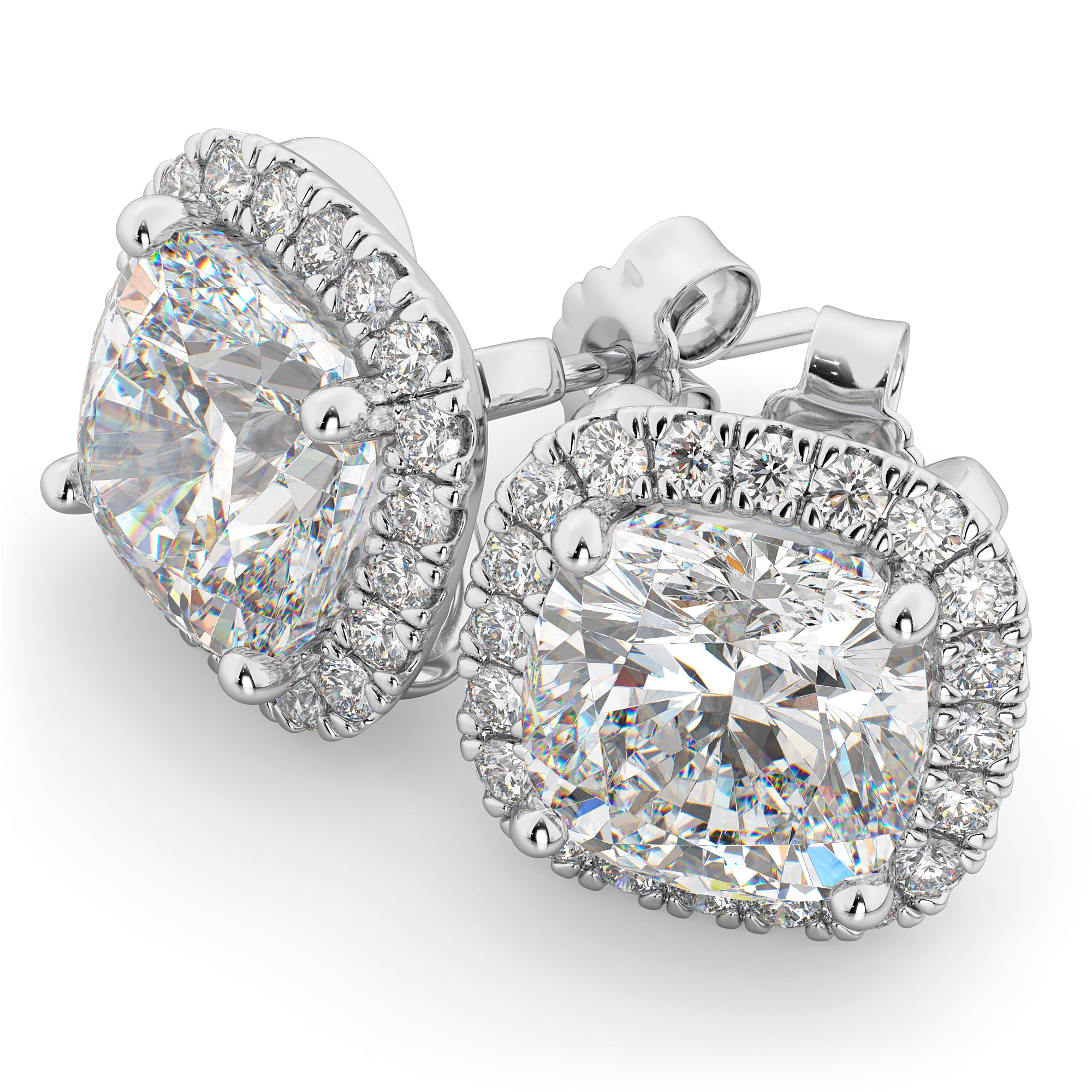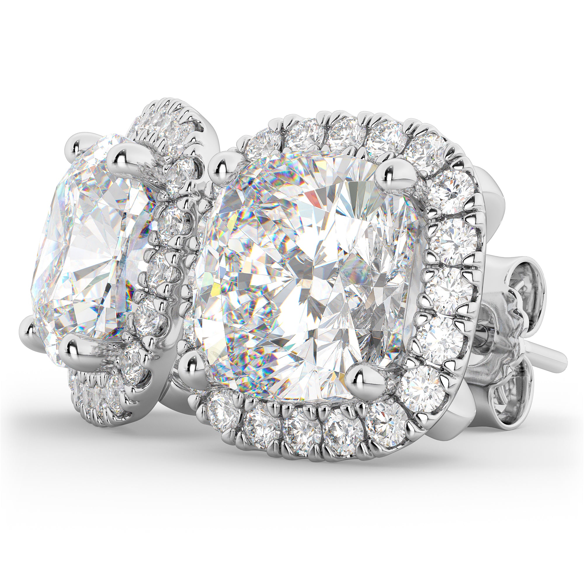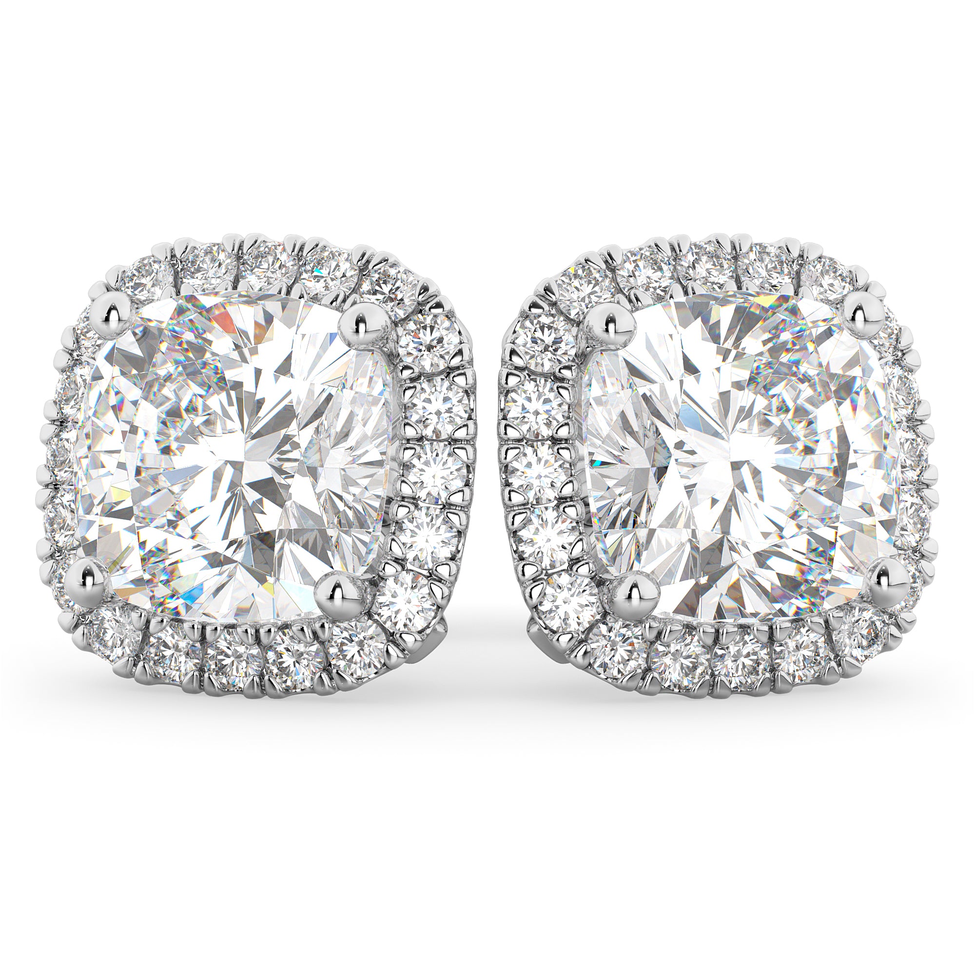 Halo Cushion Moissanite & Diamond Earrings 14k White Gold (3.52ct)