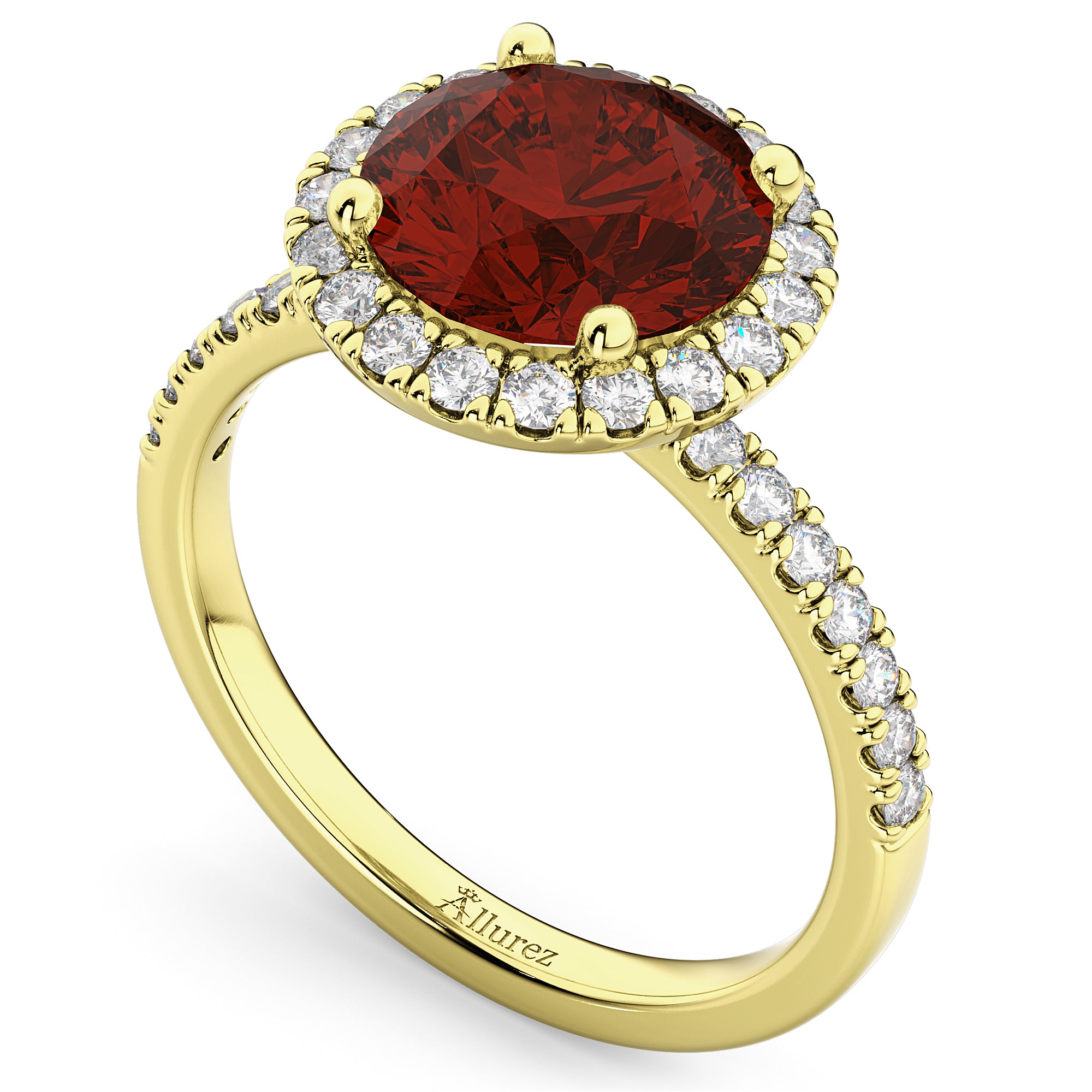 Halo Garnet & Diamond Engagement Ring 14K Yellow Gold 3.00ct