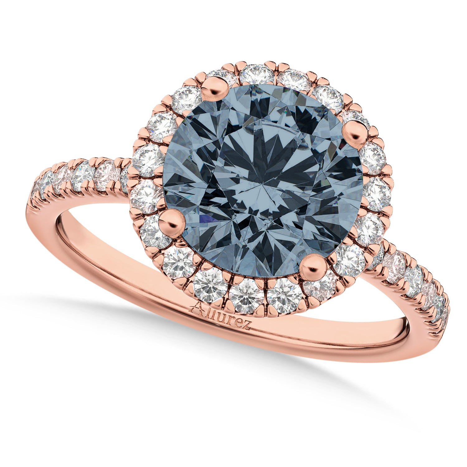 Halo Gray Spinel & Diamond Engagement Ring 18K Rose Gold 1.90ct