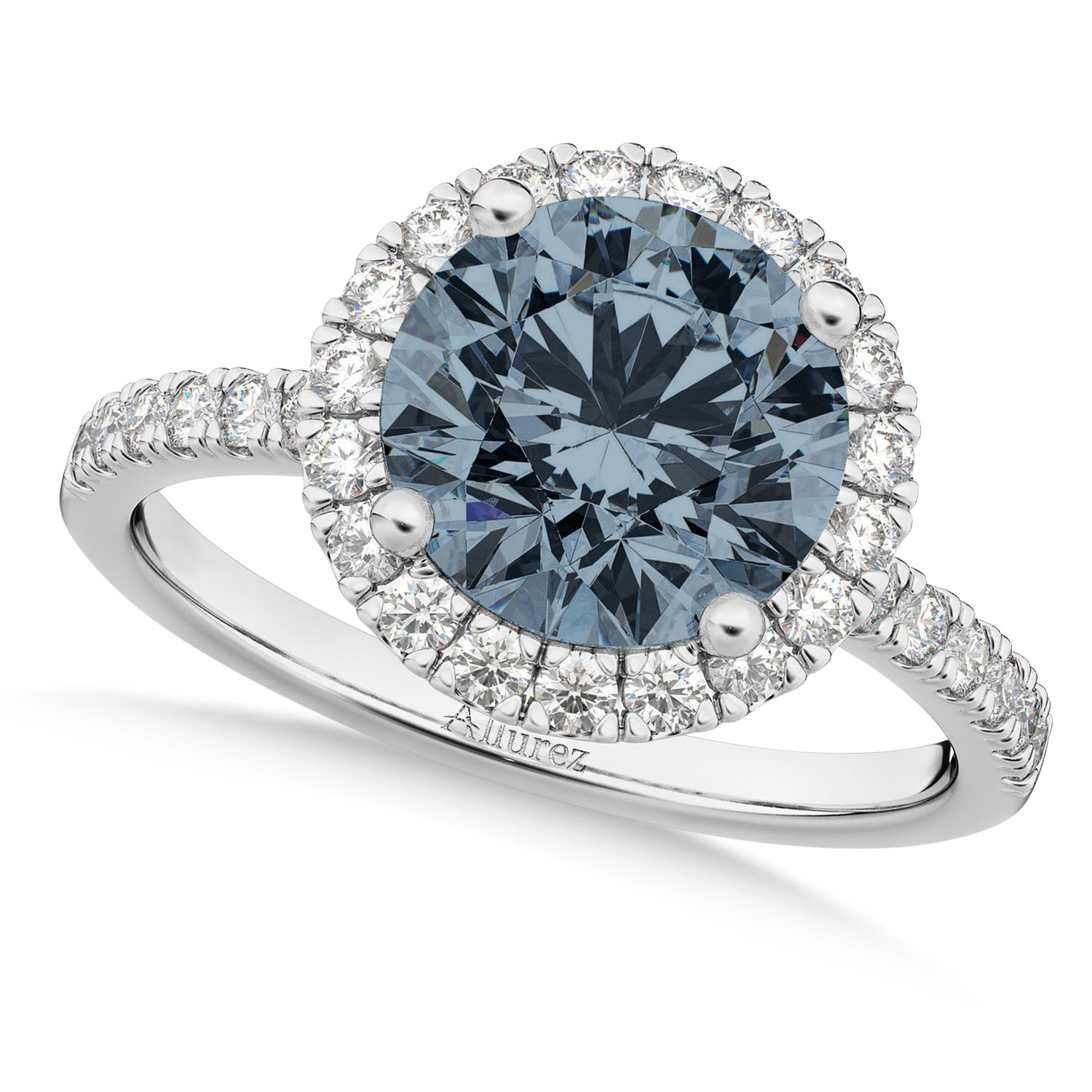 Halo Gray Spinel & Diamond Engagement Ring 18K White Gold 1.90ct