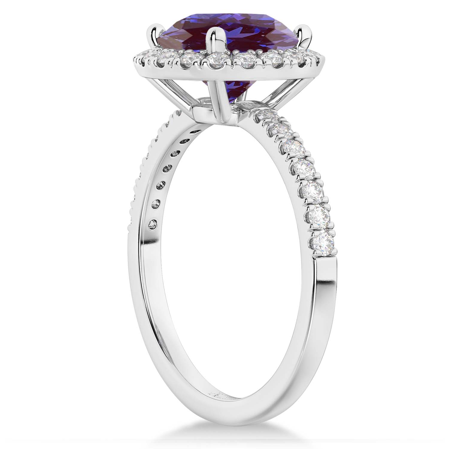 Halo Lab Alexandrite & Diamond Engagement Ring 18K White Gold 2.30ct