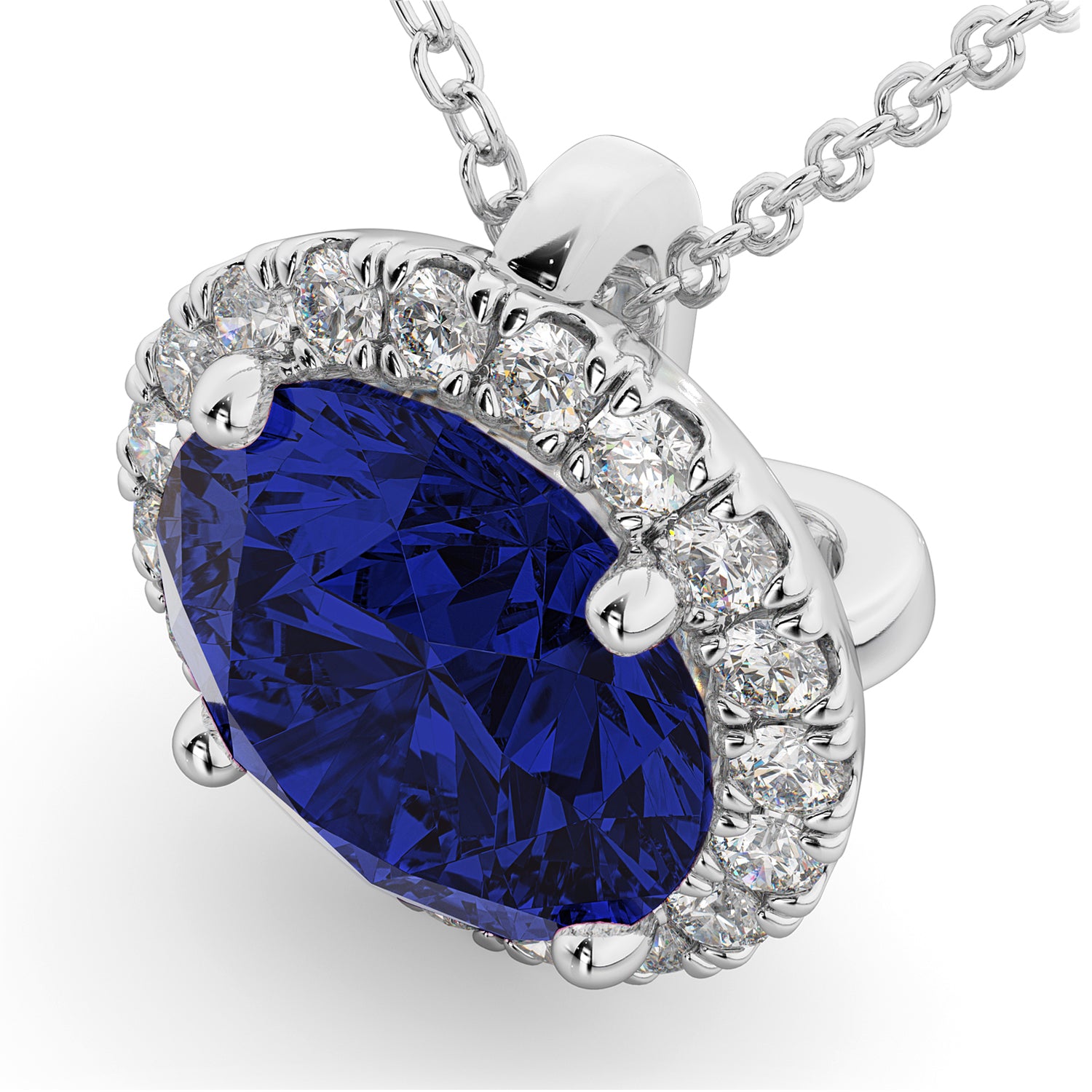 Halo Lab Blue Sapphire & Diamond Pendant Necklace 14k White Gold (2.59ct)