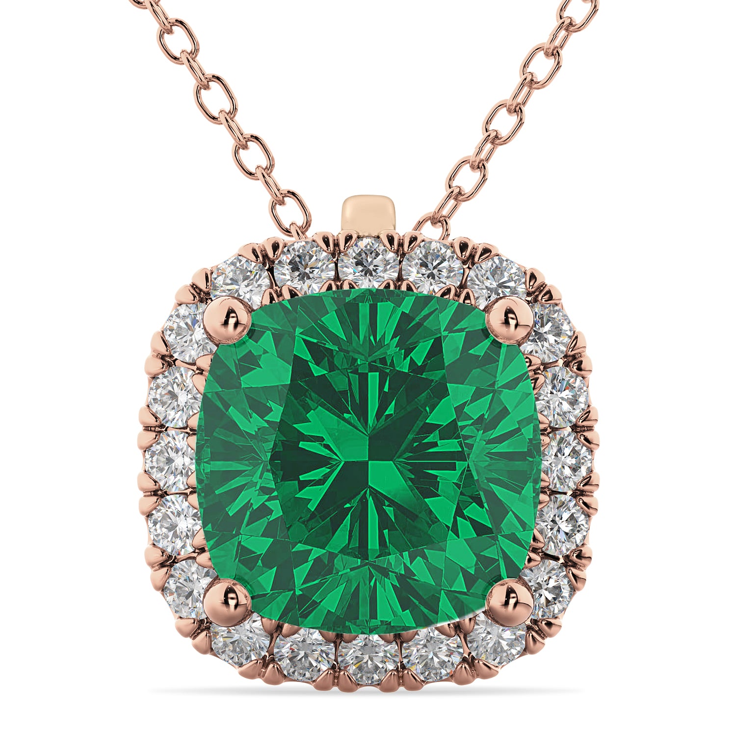Halo Lab Emerald Cushion Cut Pendant Necklace 14k Rose Gold (2.02ct)