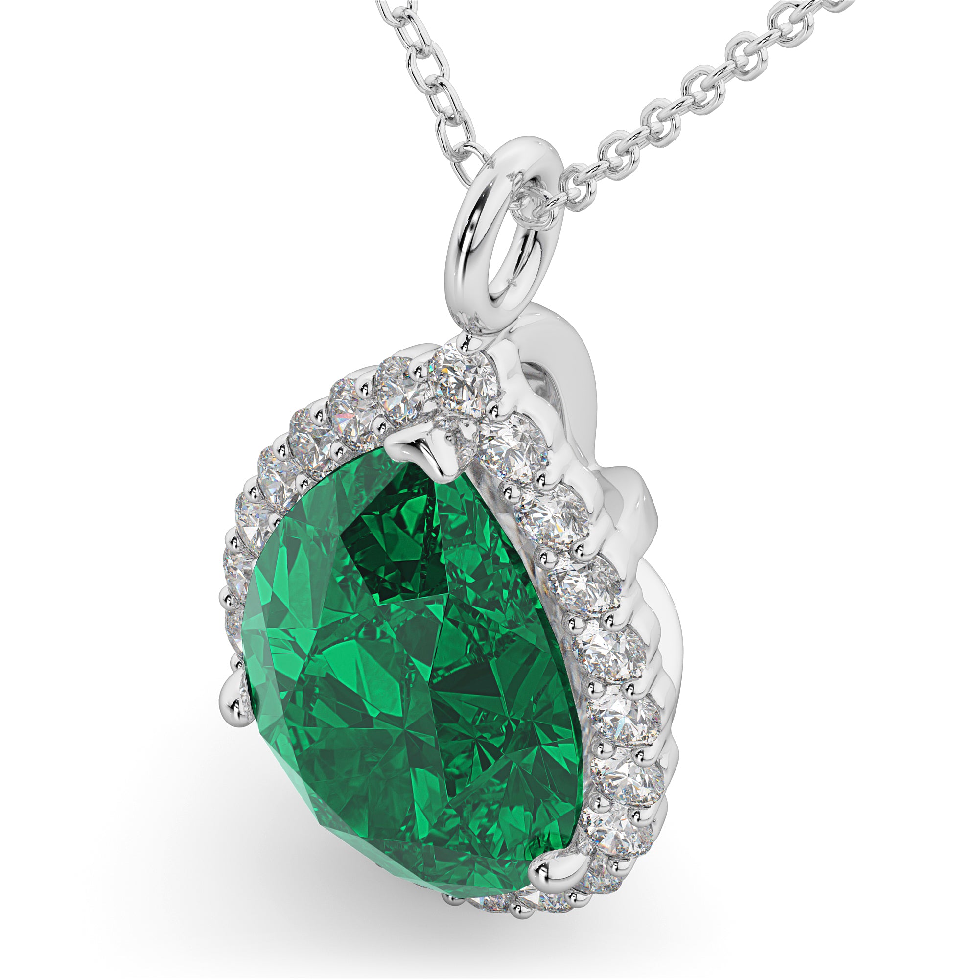 Halo Lab Emerald & Diamond Pear Shaped Pendant Necklace 14k White Gold (6.54ct)