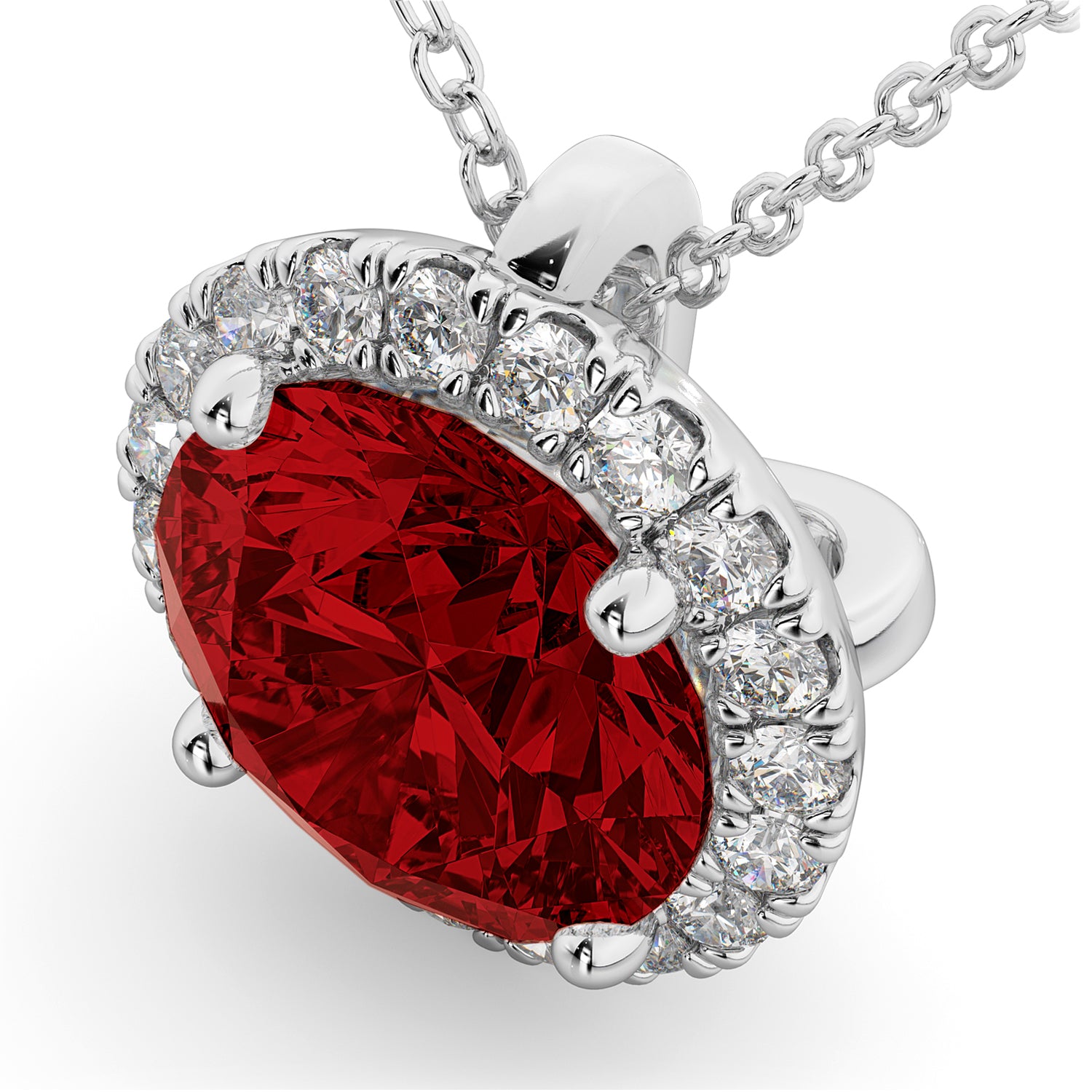 Halo Lab Ruby & Diamond Pendant Necklace 14k White Gold (2.59ct)