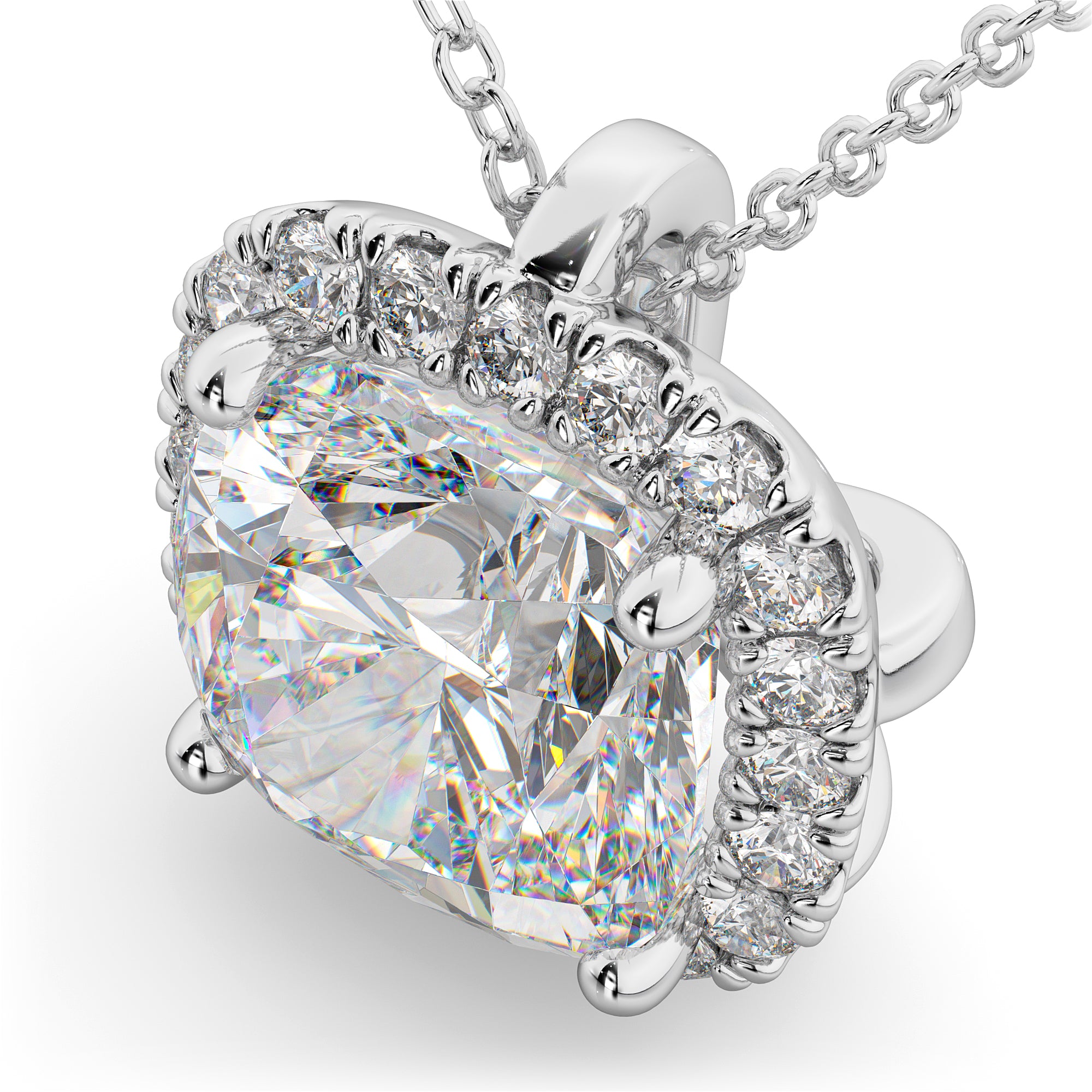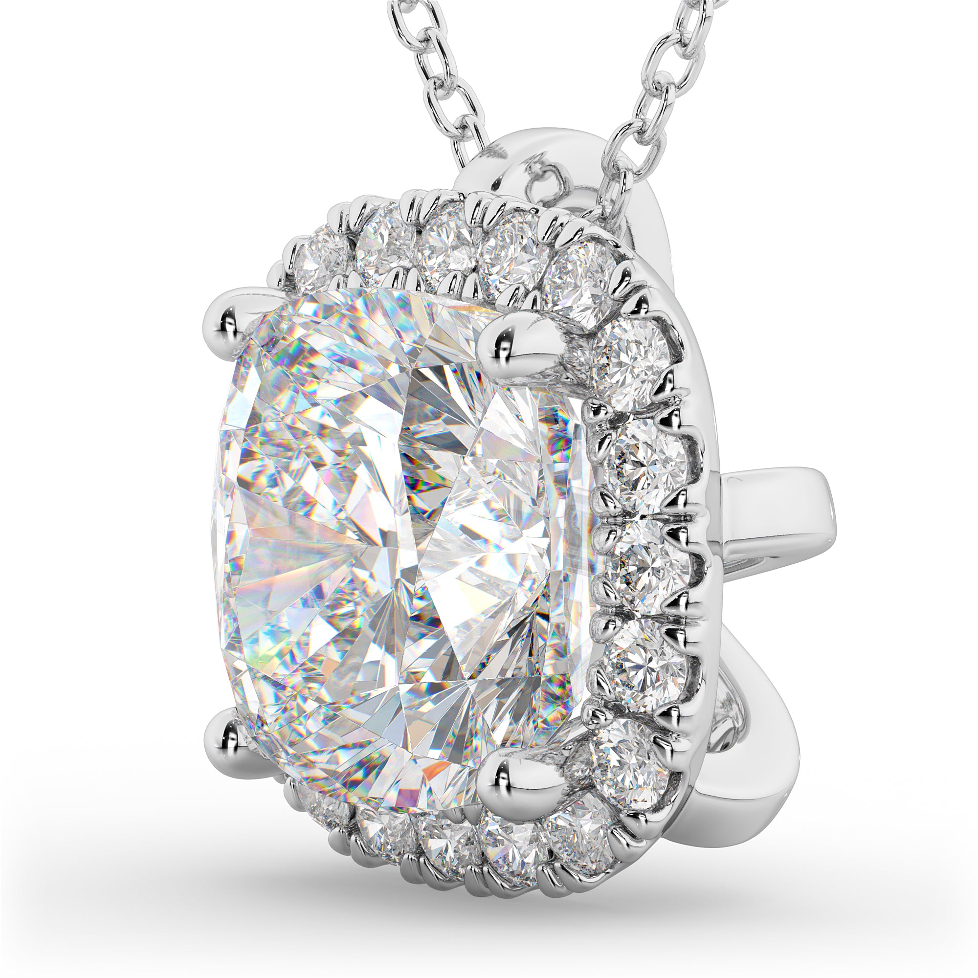Halo Moissanite Cushion Cut Pendant Necklace 14k White Gold (1.76ct)